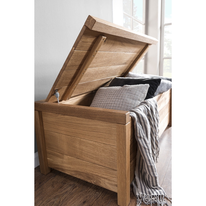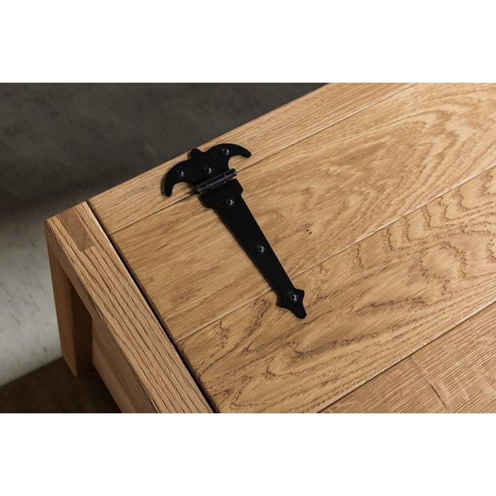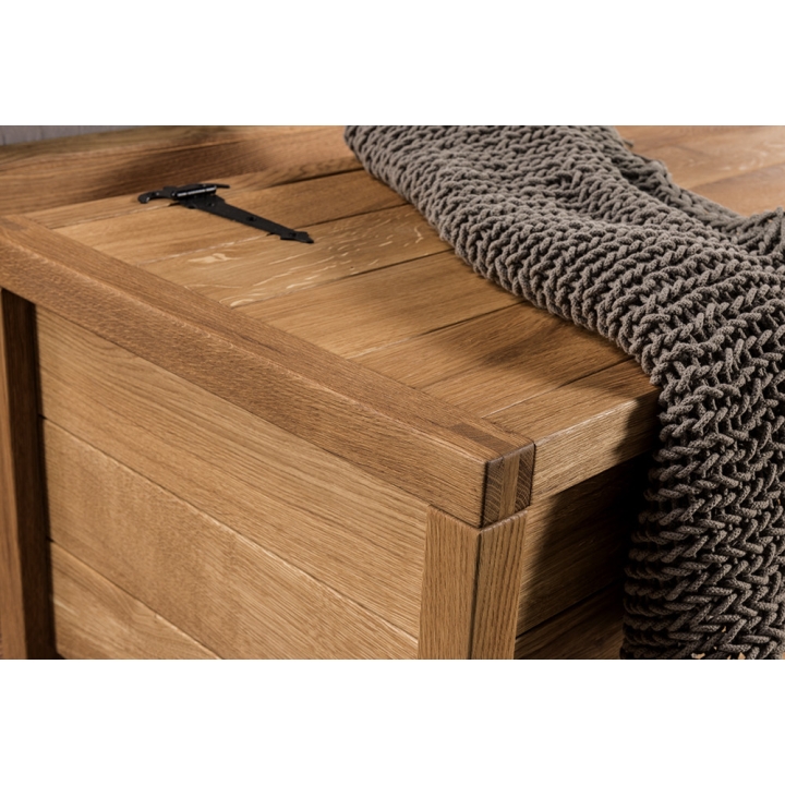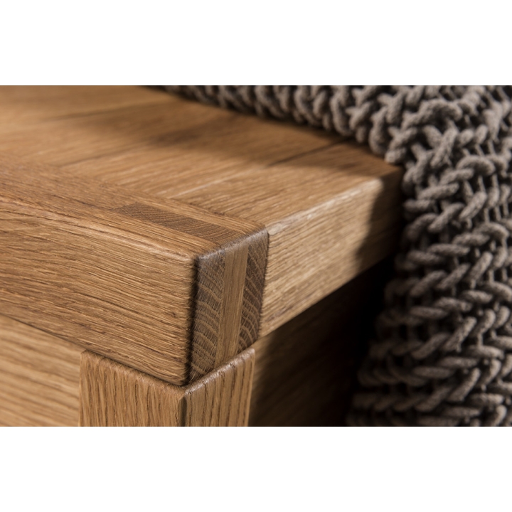Thebox from the Box collection is a simple design that is an attractive and modern combination of natural materials that make the product truly unique. The brushed knotty oak gives the product a unique, natural look that will appeal to even the most demanding customer. In addition, the piece of furniture is very practical as it serves as additional storage or as a seating area. The chest is made of solid oak wood, which is durable.