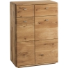 The Denver type 10 shoe cabinet by Dekort is a highly functional piece of furniture that offers plenty of storage space. The furniture has two practical drawers and a closed section with four shoe shelves. The Denver cabinet has been made of solid oak wood and additionally protected by oiling. The warm natural colour of the wood exudes a friendly atmosphere, while the knots, brushed surface and natural cracks lend a rustic and industrial character. The curved edges of the carcass and the metal handles also draw attention. The piece of furniture would work well in a rustic setting as well as in a modern home.