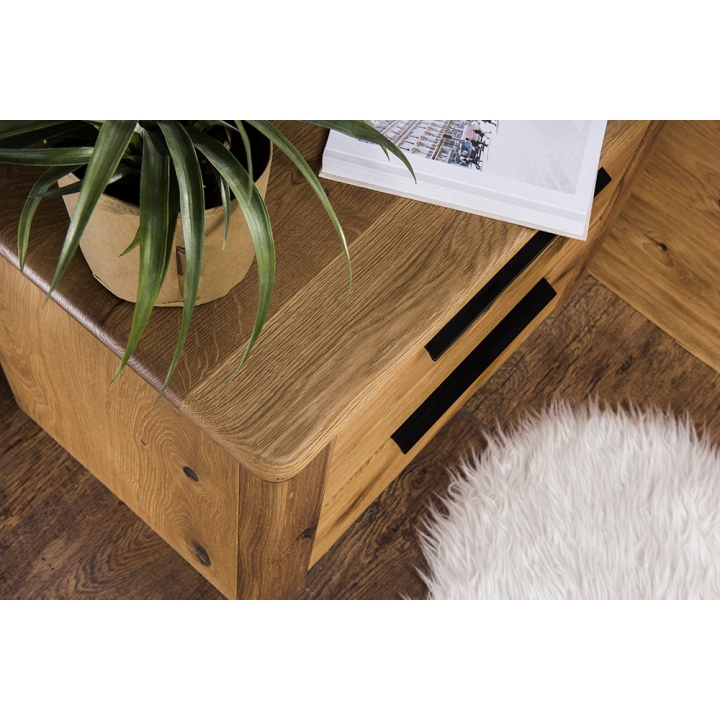 The Denver Type 82 bedside table by Dekort is a practical accessory that is an indispensable piece of equipment for any bedroom. It looks great together with a bed from the same collection. The furniture was made of high quality oak wood, thanks to which it remains durable and aesthetically pleasing for a long time. The furniture has two practical drawers where you can store small items or things you want to have always at hand. The small top will serve as a place where you can set a bedside lamp or alarm clock.