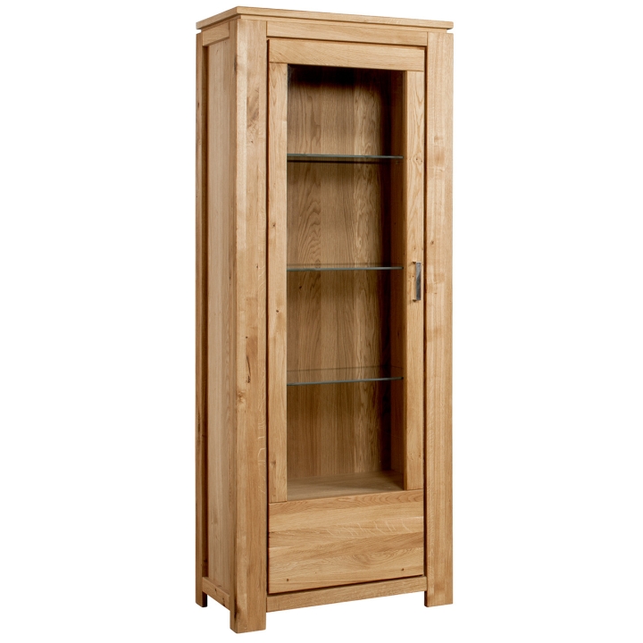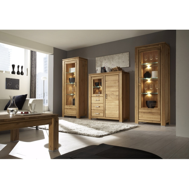 The Faro Type 10 left-sided vitrine by Dekort is an elegant and functional proposal made of high quality knotty oak combined with a veneered furniture board. The use of solid oak wood is a guarantee of durability and attractive appearance for many years. The display cabinet has a large glazed section so that ornaments, souvenirs or china crockery can be displayed. The Faro display cabinet in natural colours will add style to your interior and emphasise its unique character. This offer does not include lighting, which is an extra paid option. Please contact the seller to order it or to check the price.