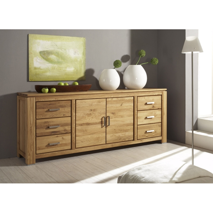 The large chest of drawers from the Faro type 49 collection by Dekort is an elegant and extremely capacious piece of furniture, which is a perfect complement to the other pieces from the Faro collection. The chest of drawers was made of high quality knotty oak combined with veneered furniture board, thanks to which it is characterised by stability, durability and original design. The furniture has as many as six capacious drawers and two lockable cabinets. On the top of the chest of drawers you can place ornaments, souvenirs, photos, etc. The capacious interior will help to maintain order and tidiness. The natural colouring, together with the visible wood structure, makes this piece of furniture unique. Due to its dimensions, it will be ideal for spacious rooms.