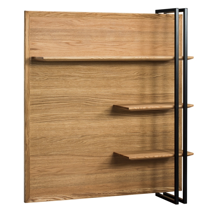 Thepanel with shelves from the Vigo type 40 collection by Dekort is a practical accessory that is sure to work well in the living room, study or bedroom. The panel has three shelves of different lengths, on which you can place various accessories or necessary items. The panel is made of solid oak wood, veneered board, which are a guarantee of durability. The furniture is distinguished by the natural colouring of the wood with its visible structure and knots and rings. The harmonious combination of brushed solid oak wood and calm metal accents creates a sensual overall look.