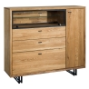 The large stylish Vigo type 47 chest of drawers from the manufacturer Dekort is an excellent piece of furniture that is sensational for storing documents, family heirlooms, clothes, etc. The capacious and practical storage space will help to maintain order and tidiness in the room to a large extent. The Vigo Type 47 chest of drawers will be perfect for any room, as well as any arrangement. It will be a perfect complement to a living room, bedroom or even a hallway. The Vigo chest of drawers is made of solid oak and veneered board, thanks to which it will retain its aesthetic appearance and durability for longer. The structure of the furniture is set on black metal legs in the shape of skids. The harmonious combination of brushed solid oak wood and calm metal accents creates a sensual overall look.