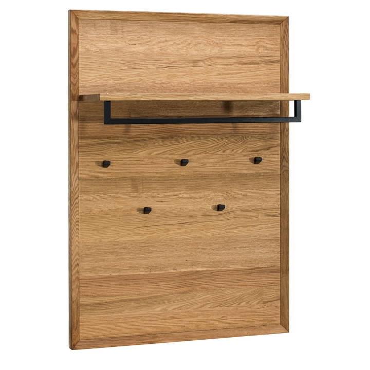The practical Vigo Type 40 panel will certainly complement the arrangement of a modern hallway. The minimalist design and natural colour of oak wood make it easy to find its place in a variety of arrangements. The panel is very solid and durable, as the highest quality materials were used in its production. The natural colouring and grain of the wood make it a unique piece of furniture. The Vigo panel has a practical shelf, a metal hanger grip and hooks for outerwear.