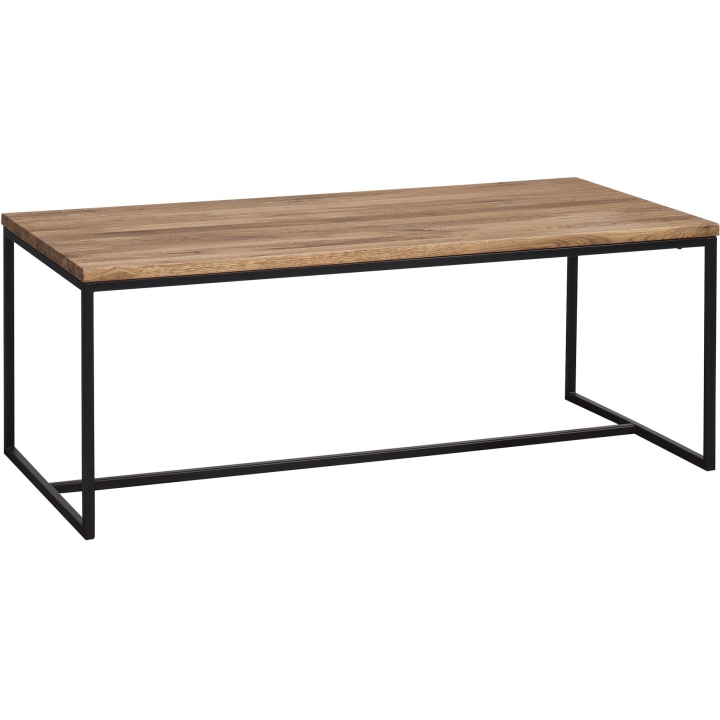The Type 64 occasional table from Dekort's Lagos collection is an ideal choice for loft and industrial style interiors. The top is made of furniture board veneered with natural oak veneer, thanks to which the natural grain of the wood is visible. Lagos Type 64 table will perfectly complement and warm the living room coffee corner. The Lagos collection is a simple, light and casual form of furniture that combines the natural structure of wood with fashionable black metal elements.