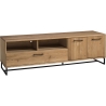 The Lagos 2D1S type 25 RTV cabinet by Dekort undoubtedly stands out in style and adds character to the interior. The cabinet fronts are made of solid brushed oak, while the body is natural oak veneer. What draws attention is the natural, subtle colouring of the wood, which, combined with the black metal base and black handles, makes the furniture piece a unique decoration of the interior. The TV cabinet has a capacious closed section with doors, a large drawer and an open section for equipment.