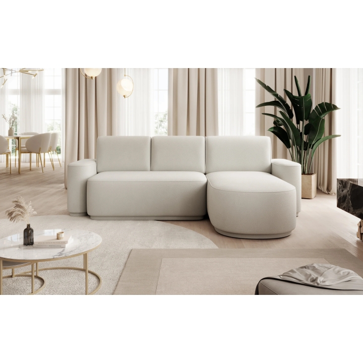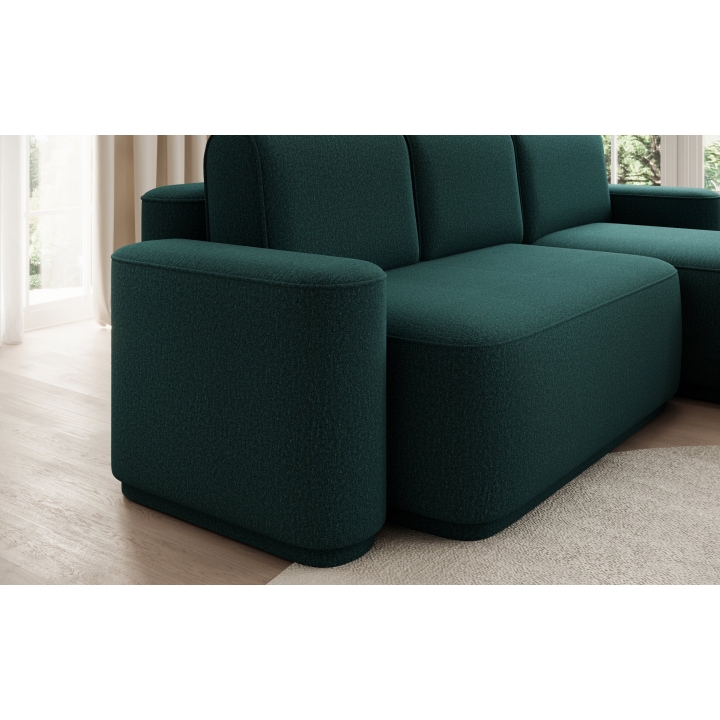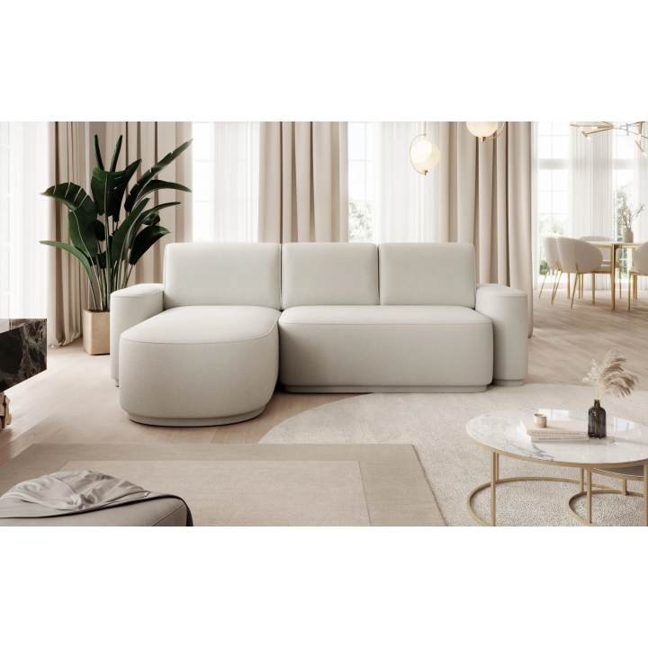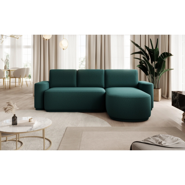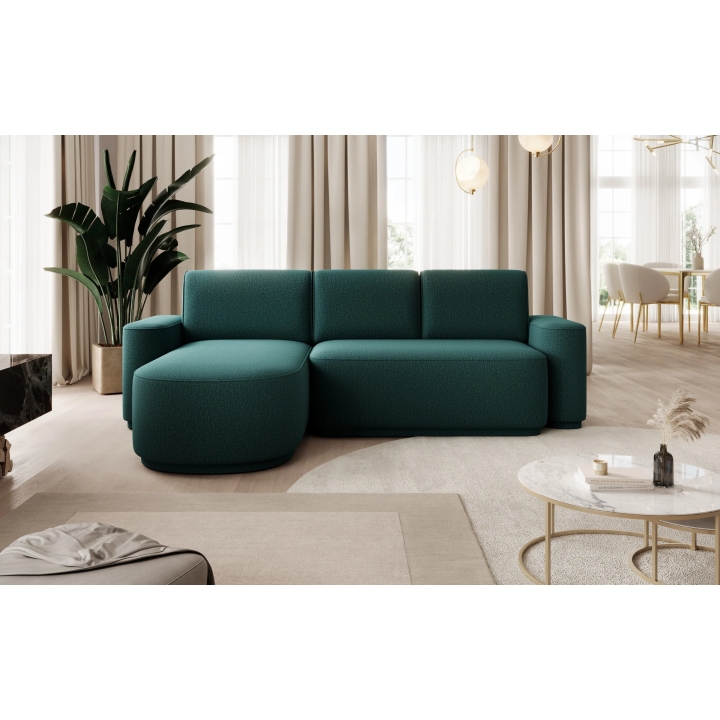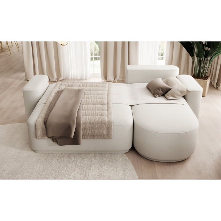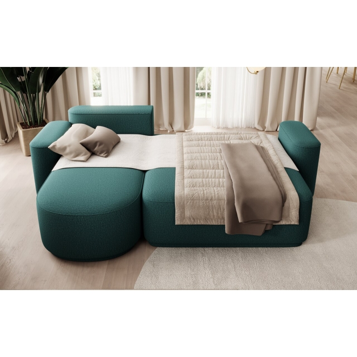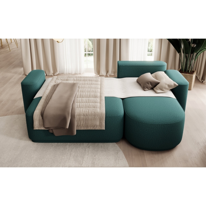 An additional convenience is the bedding container, discreetly integrated into the body of the corner sofa. It allows you to keep things neat and tidy without having to reach for additional storage space. As a result, this model is also ideal for smaller interiors, where every centimetre of free space counts.