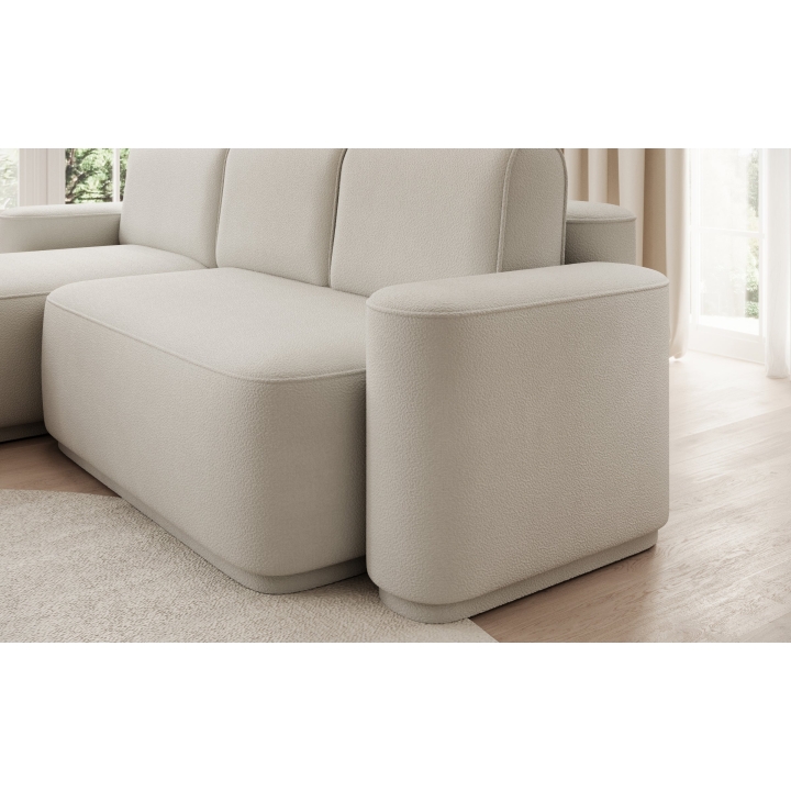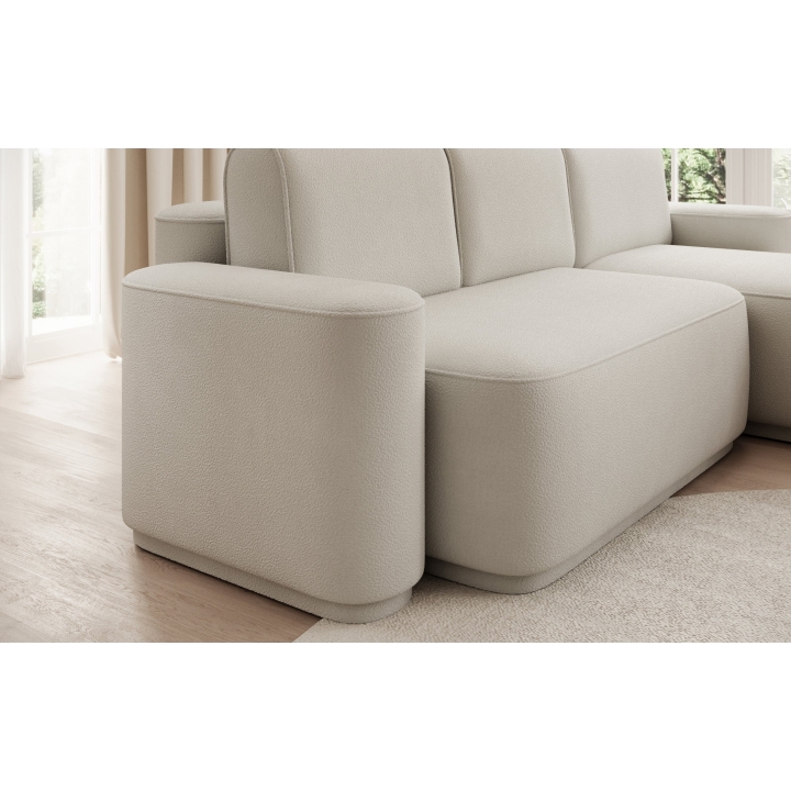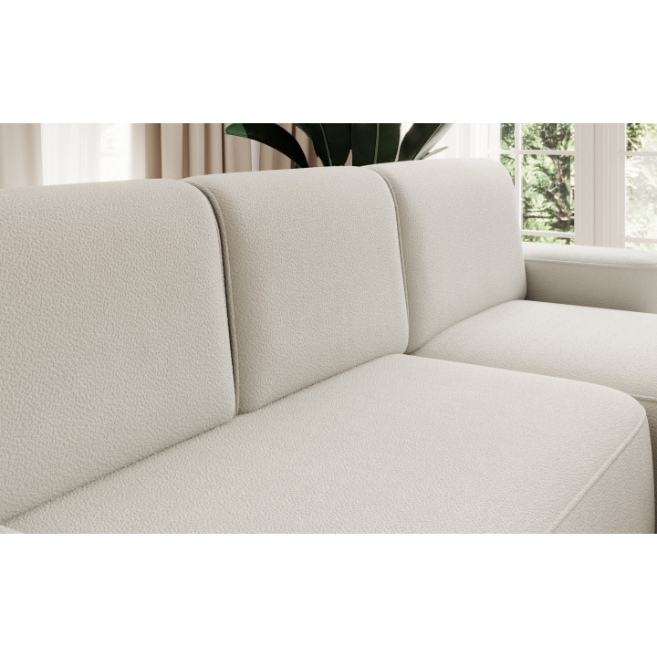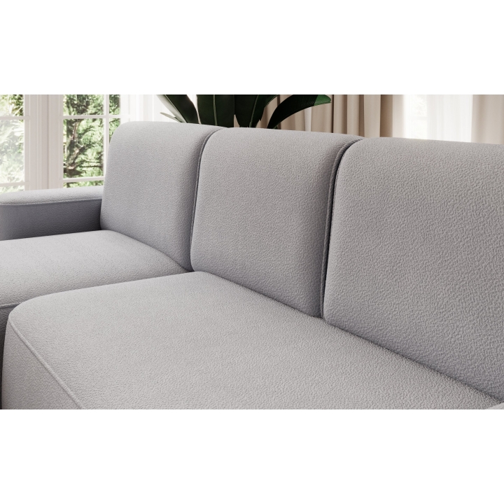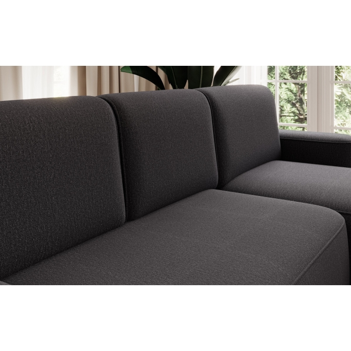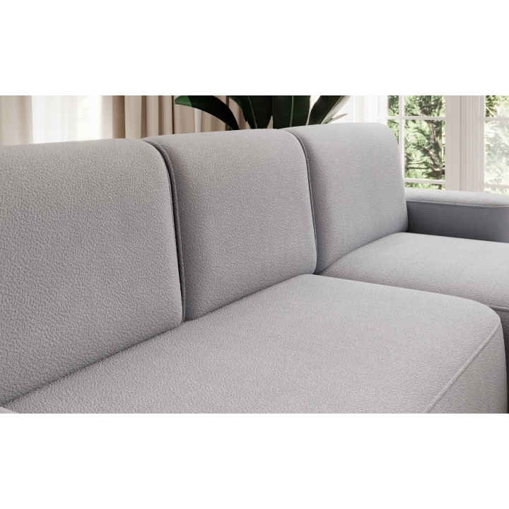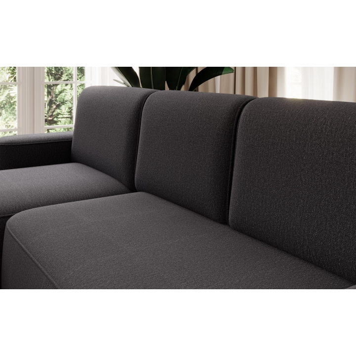 The seat filling is based on a B-type corrugated spring, supported by HR foam, which guarantees resilience and resistance to deformation. The backrest is made of T21 foam, which supports the stability of the entire structure. This allows the corner sofa to adapt well to the shape of the body, offering a distinct feeling of softness and support.