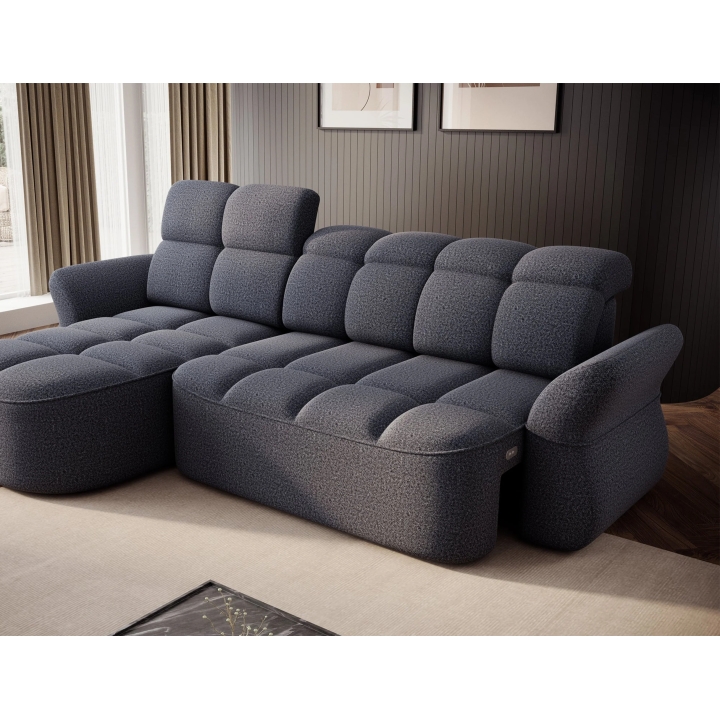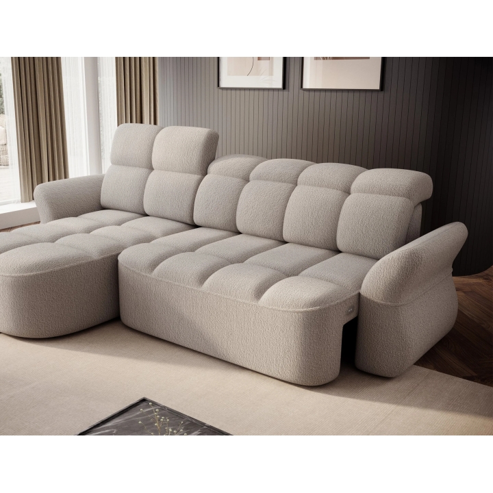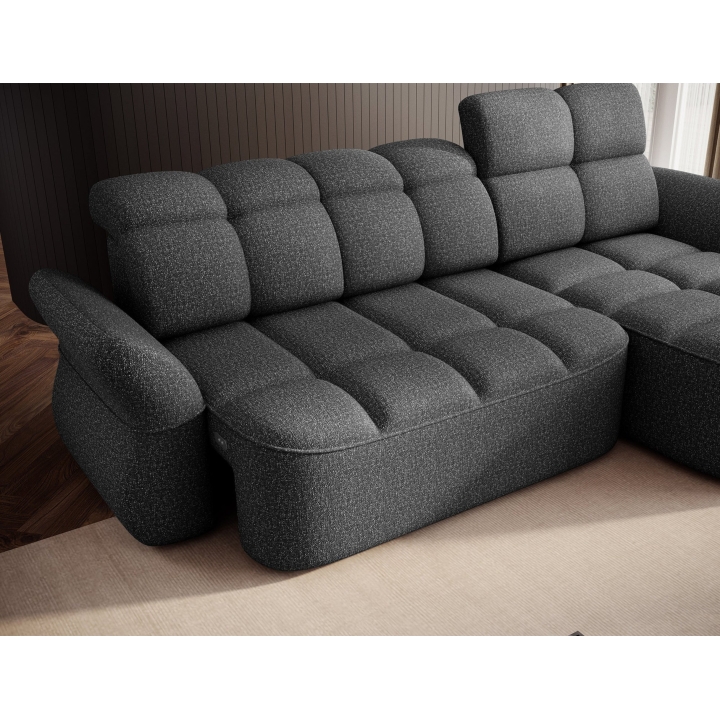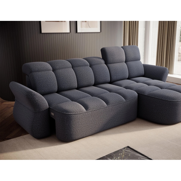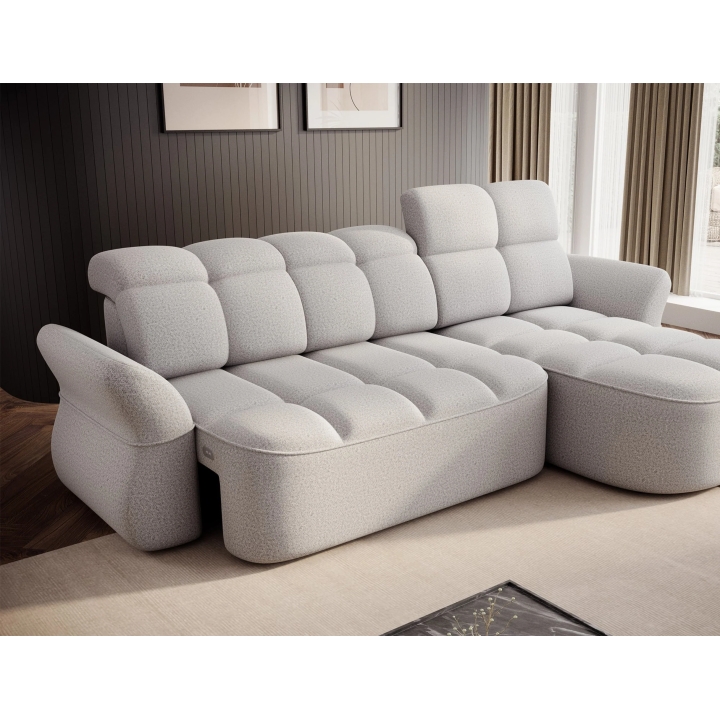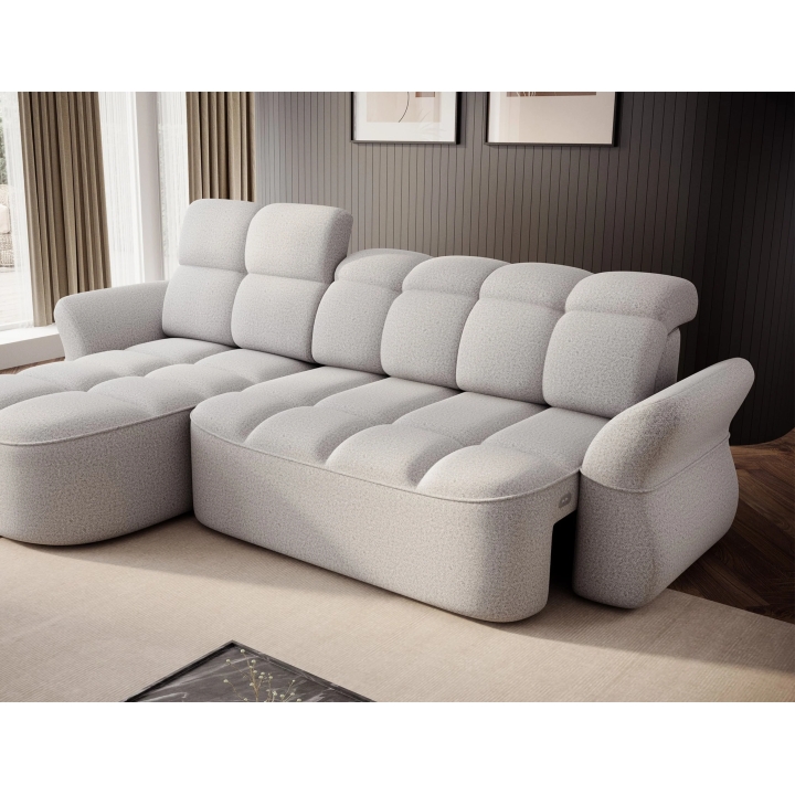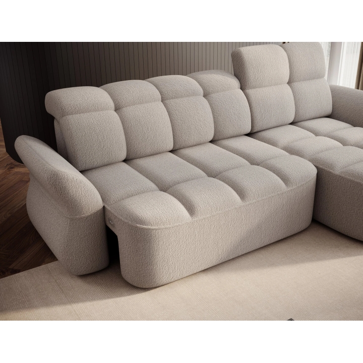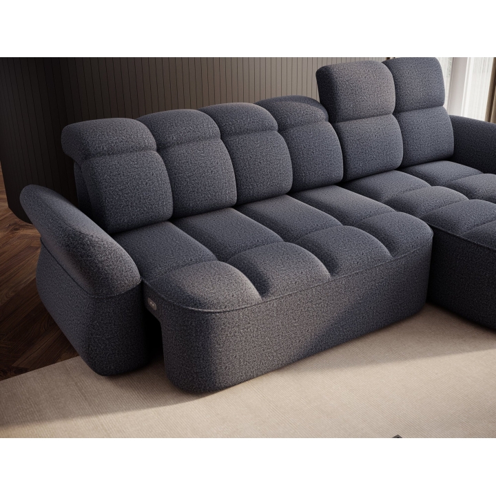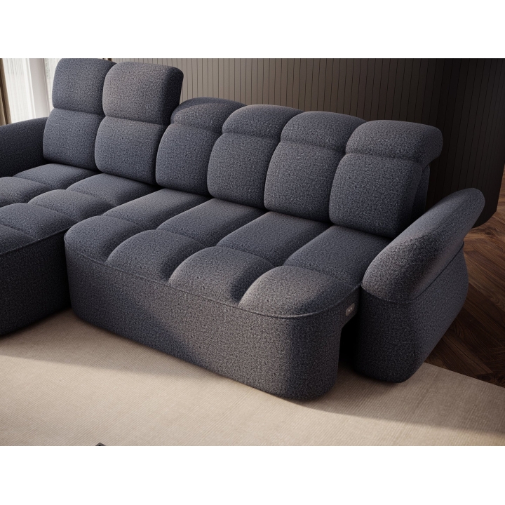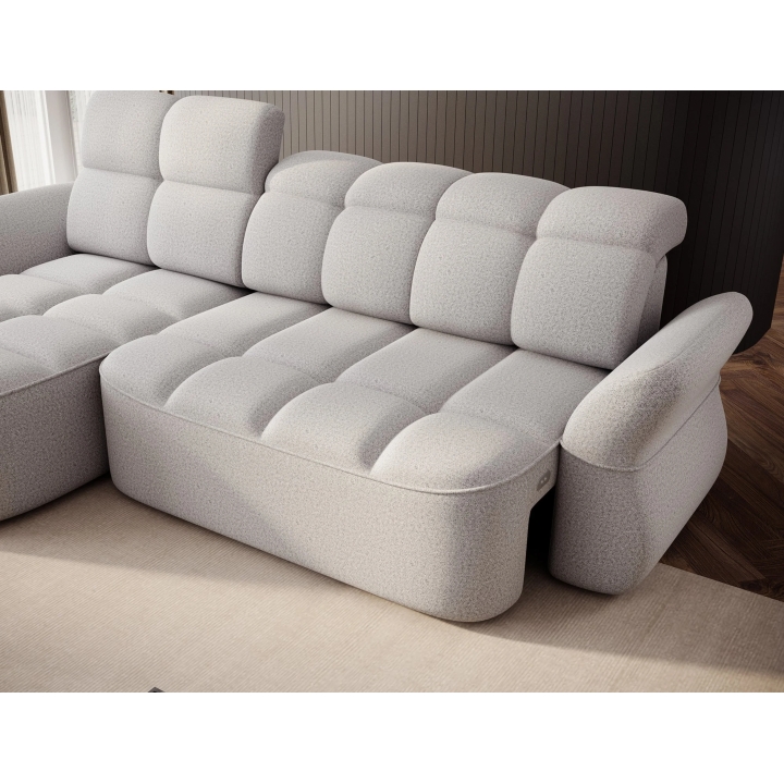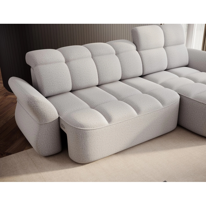 The furniture is equipped with an electrically extendable seat, which makes it possible not only to adjust the depth of the seat, but also to turn the corner into a 231x81 cm sleeping surface. The extension mechanism works smoothly and without force, allowing you to adjust the furniture's positioning to the needs of the moment with a single movement - whether for a short rest or a full-length sleep. Relaxation mode can be activated by partially extending the seat, allowing you to stretch your legs freely.