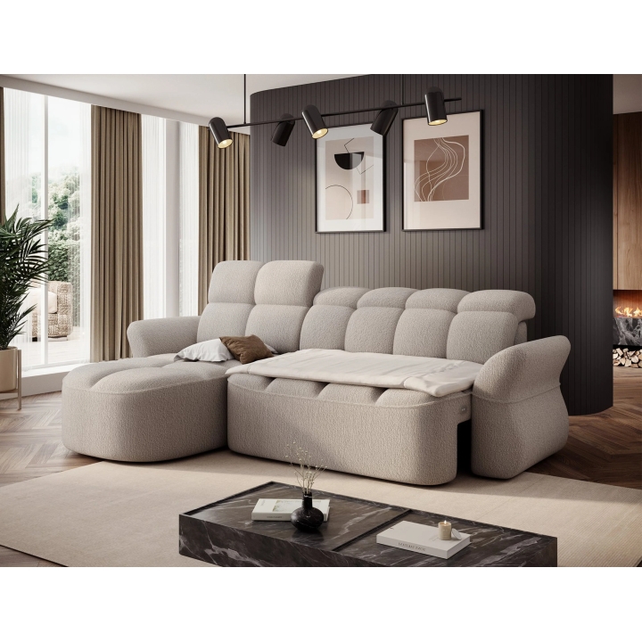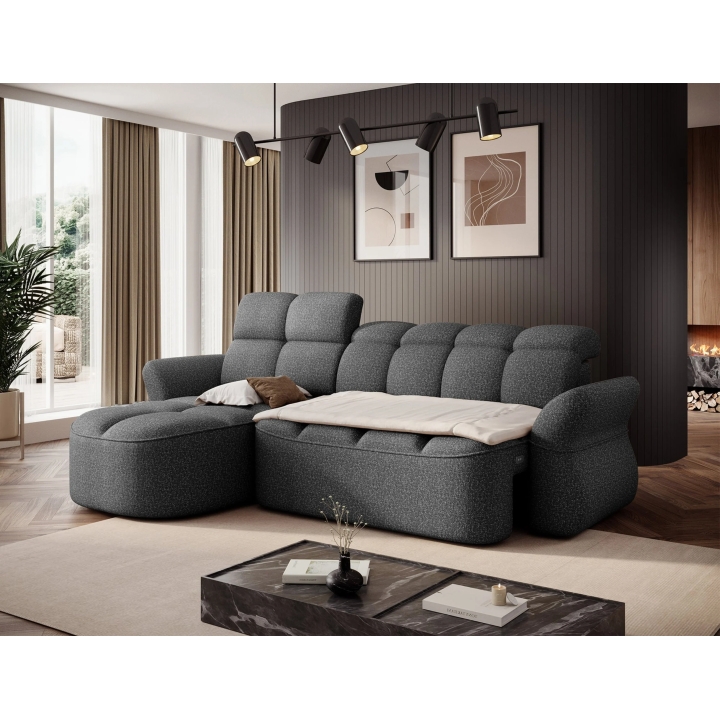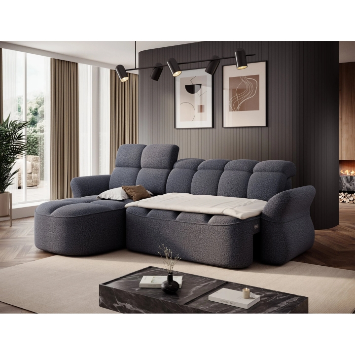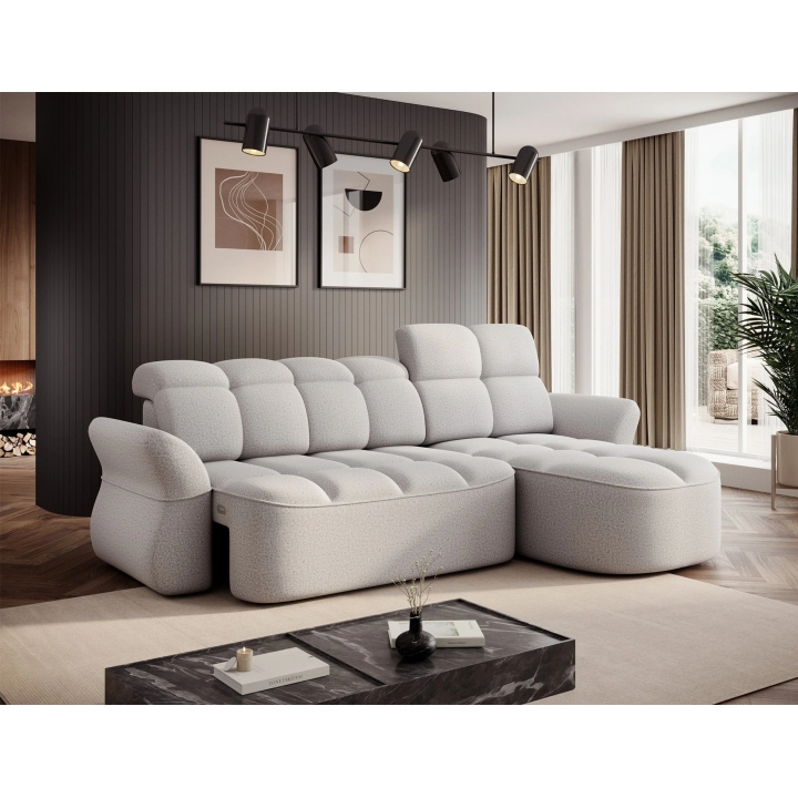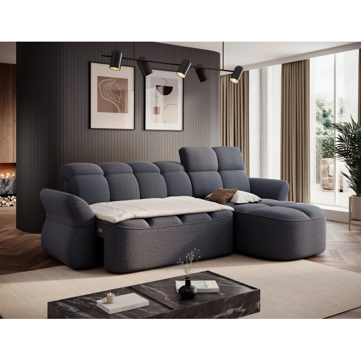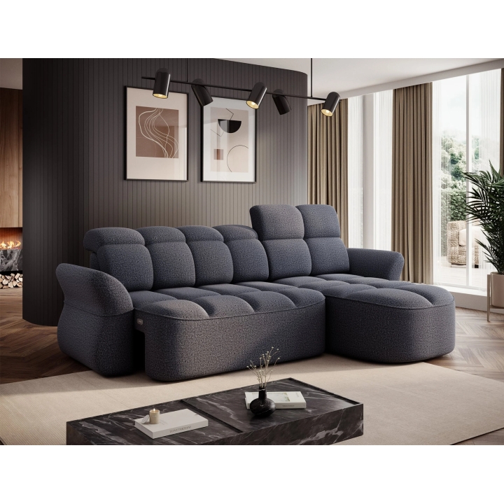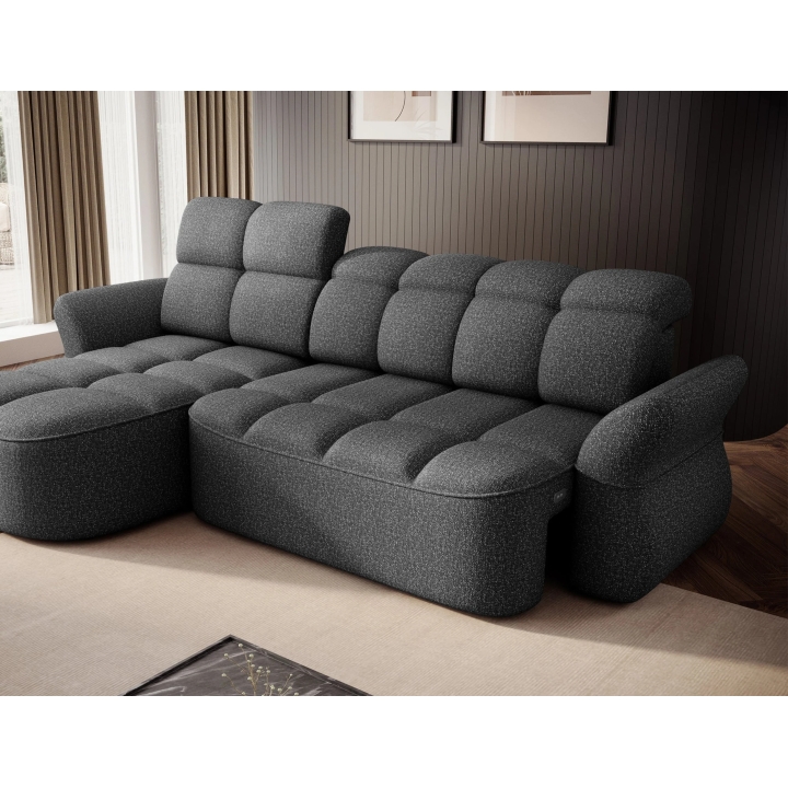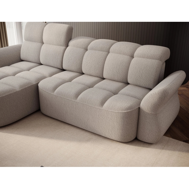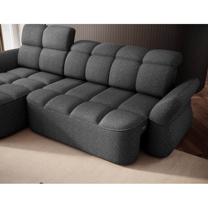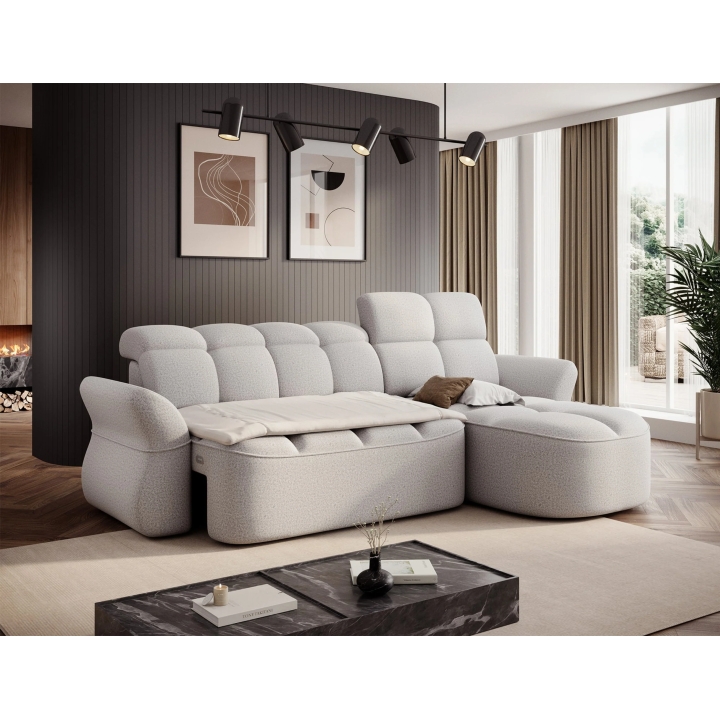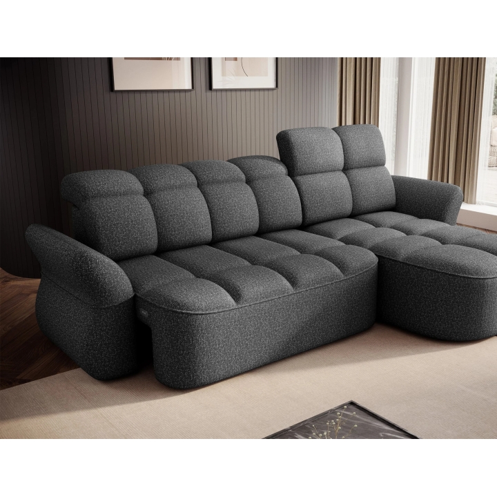 The furniture is equipped with an electrically extendable seat, which makes it possible not only to adjust the depth of the seat, but also to turn the corner into a 231x81 cm sleeping surface. The extension mechanism works smoothly and without force, allowing you to adjust the furniture's positioning to the needs of the moment with a single movement - whether for a short rest or a full-length sleep. Relaxation mode can be activated by partially extending the seat, allowing you to stretch your legs freely.