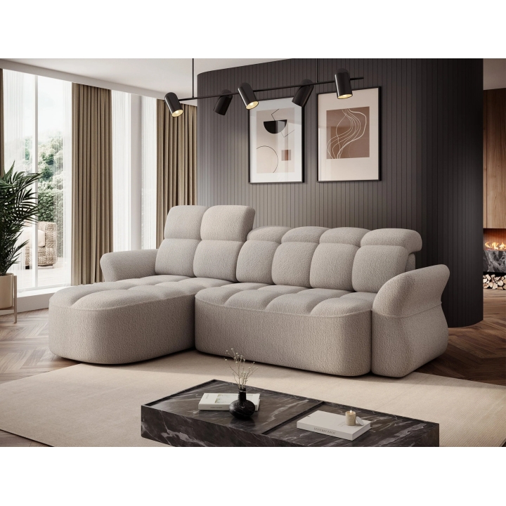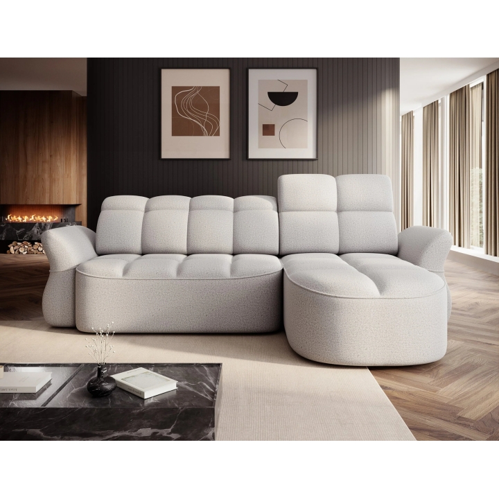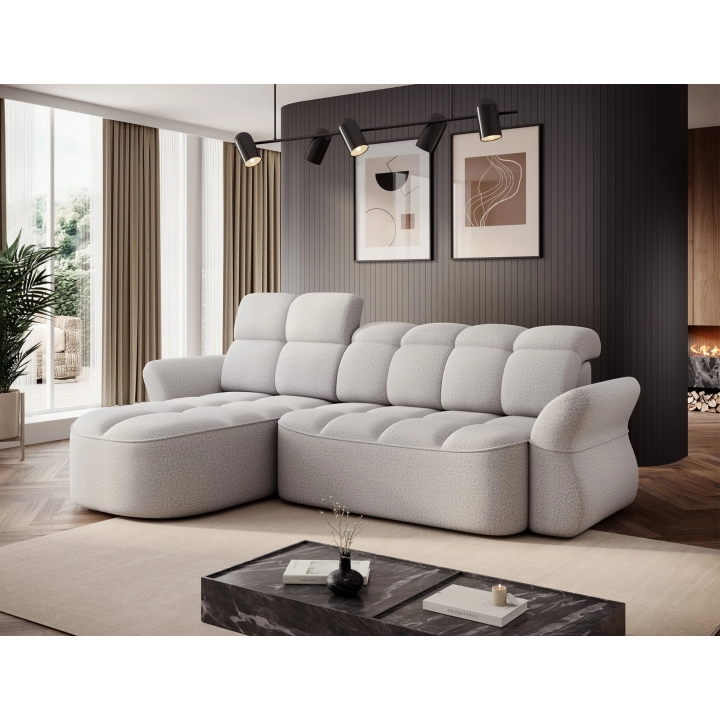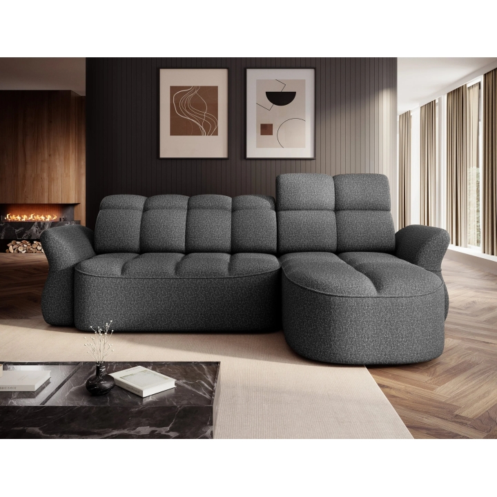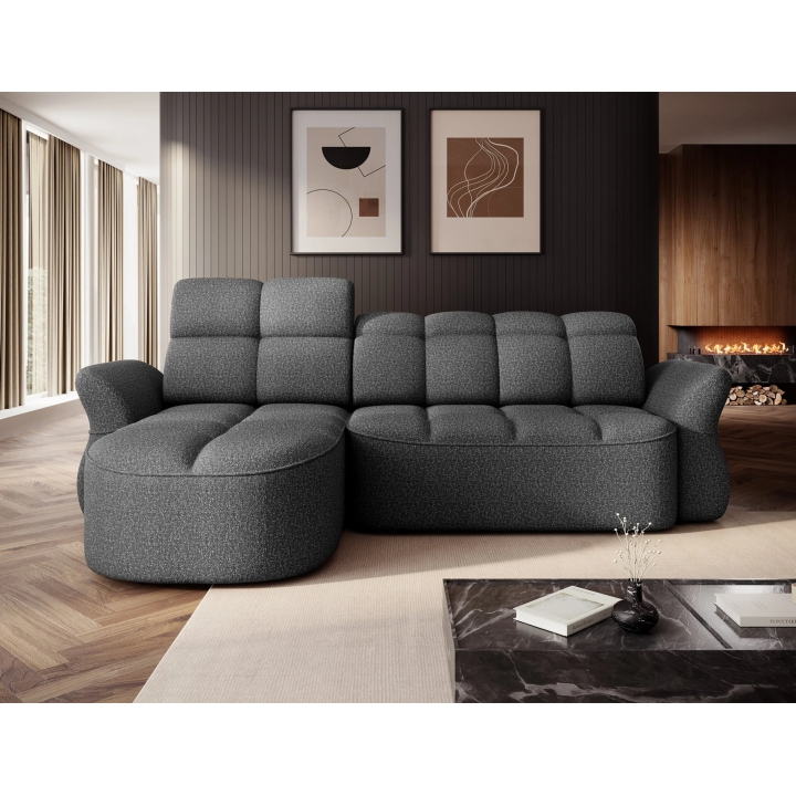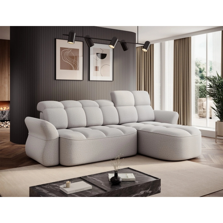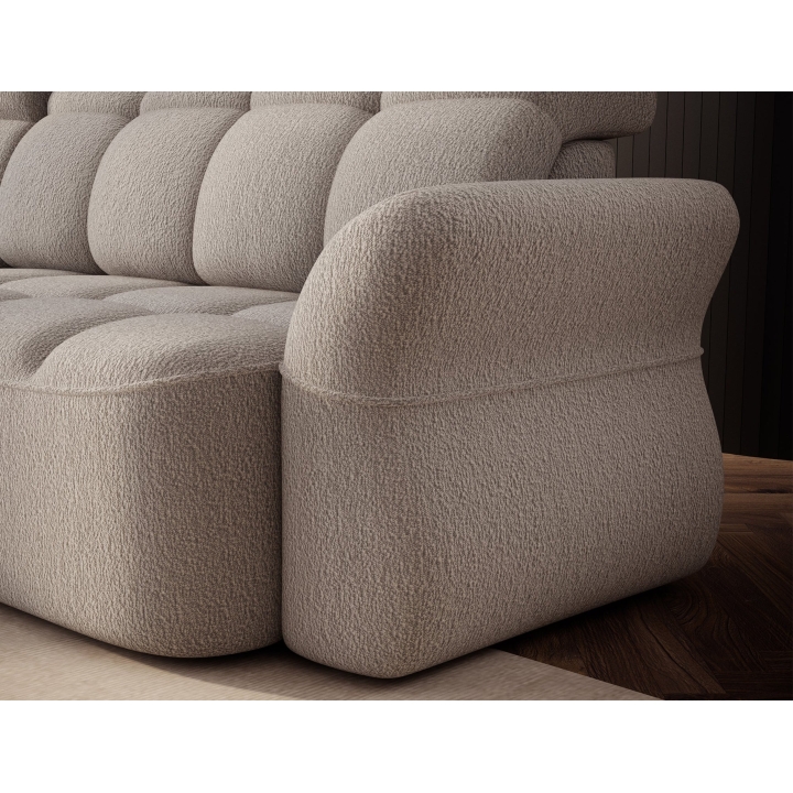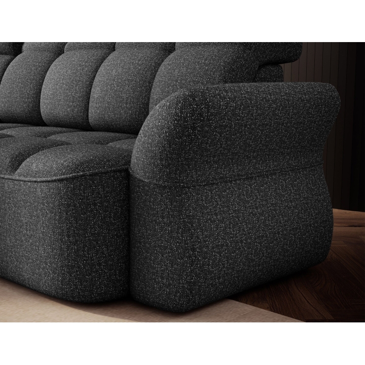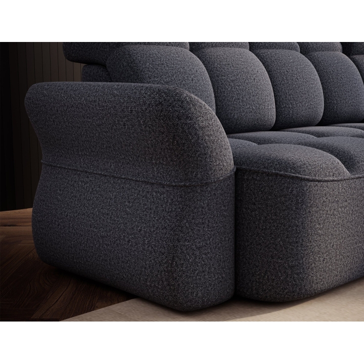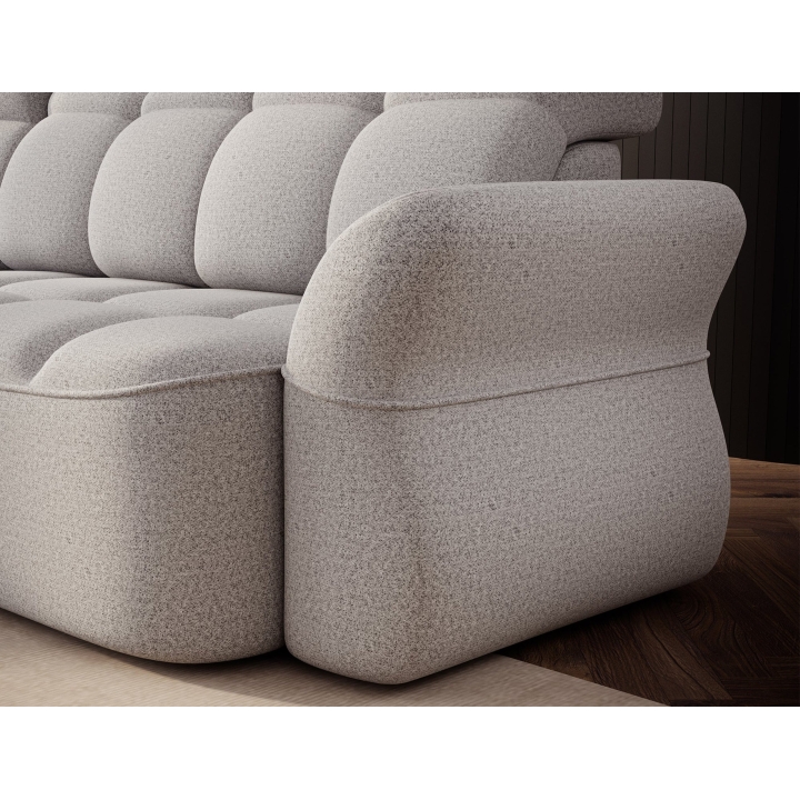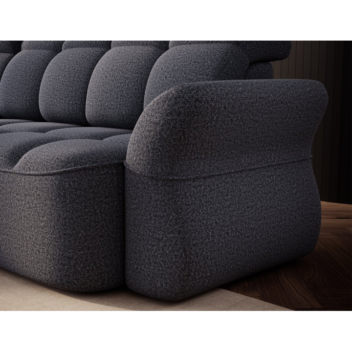 Thanks to the extensive configurator, it is possible to tailor the upholstery to individual aesthetic preferences. There is a choice of dozens of fabrics with different textures, colours and properties, which allows the corner sofa to easily fit into the intended design concept. The furniture offers not only comfort of use, but also the possibility of full visual personalisation.