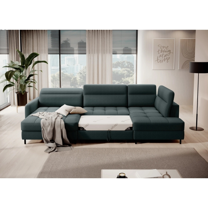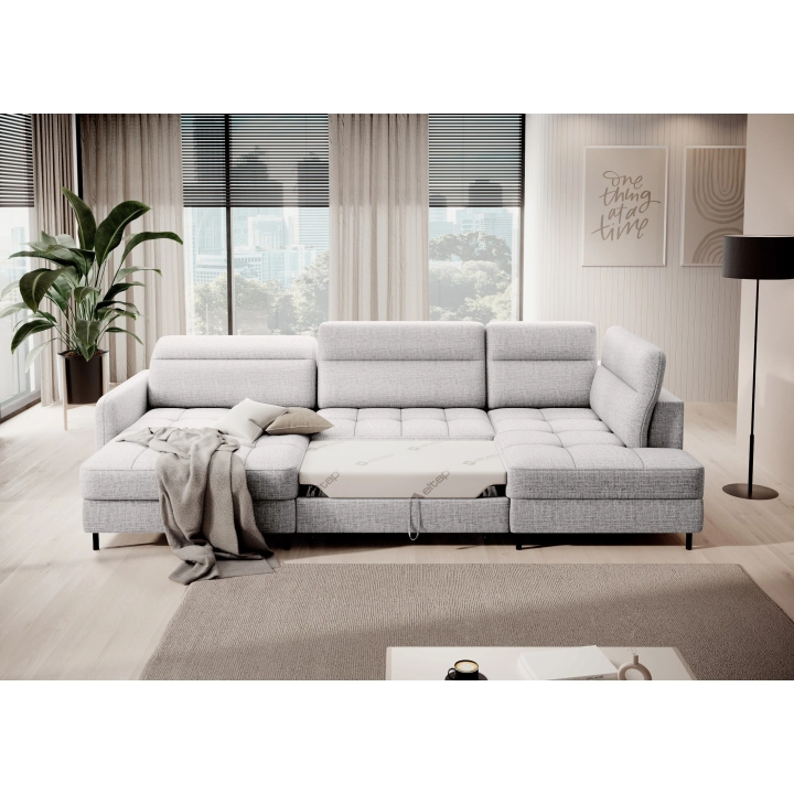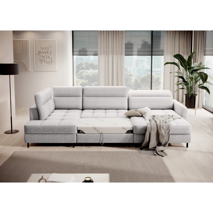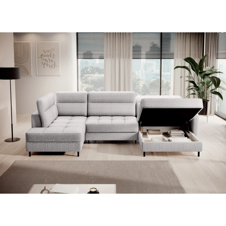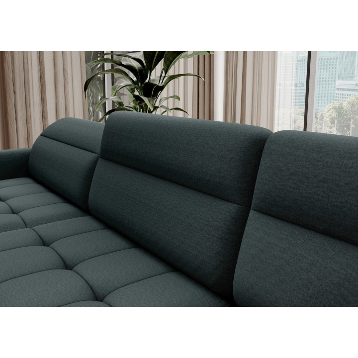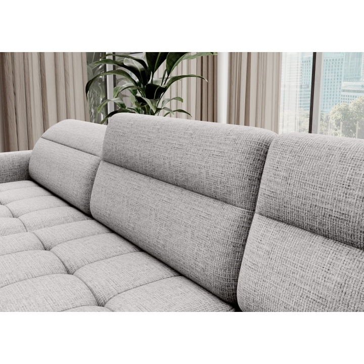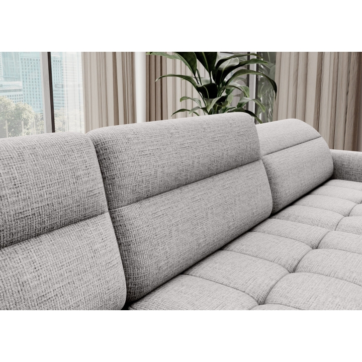Thanks to the extensive configurator, it is possible to adjust the upholstery to individual aesthetic preferences. There is a choice of dozens of fabrics with different textures, colours and properties, which allows the corner sofa to be easily incorporated into the intended design concept. The furniture offers not only comfort of use, but also the possibility of full visual personalisation.