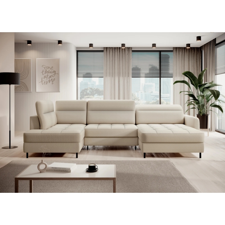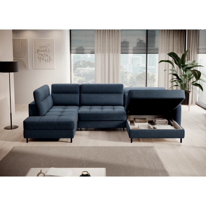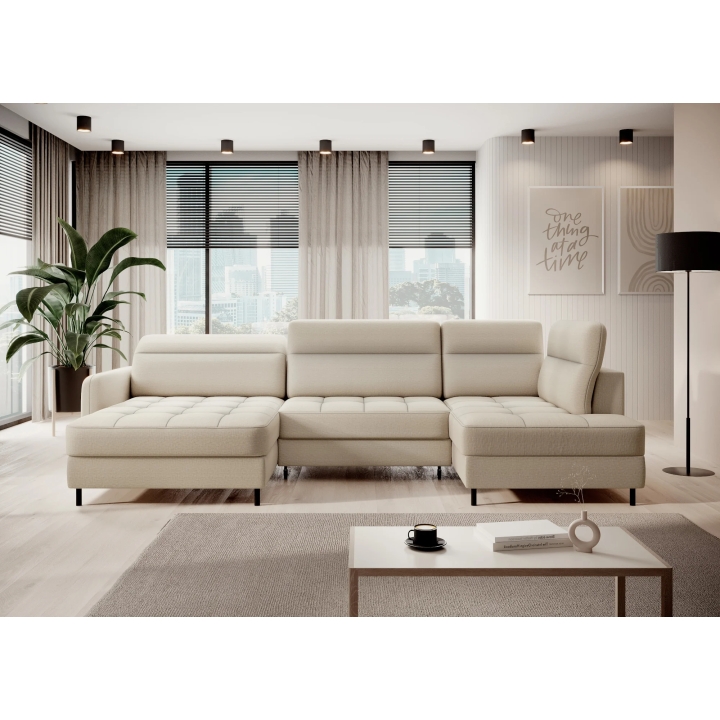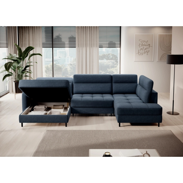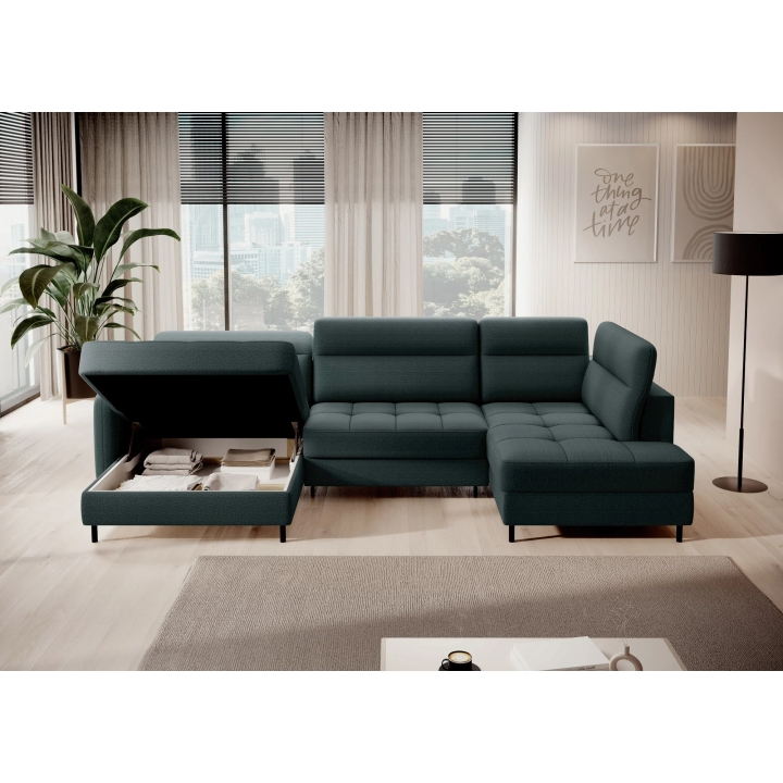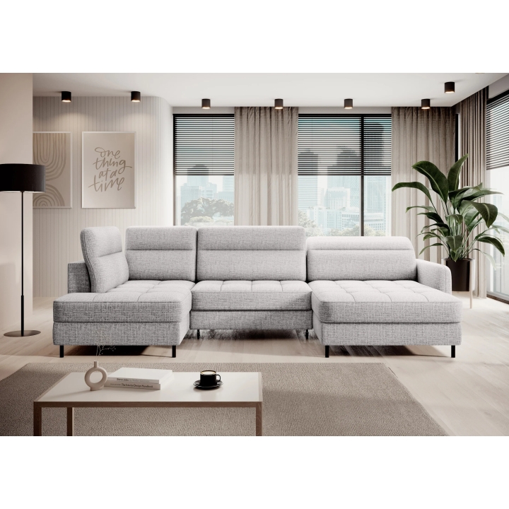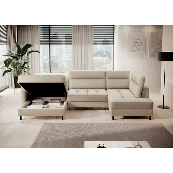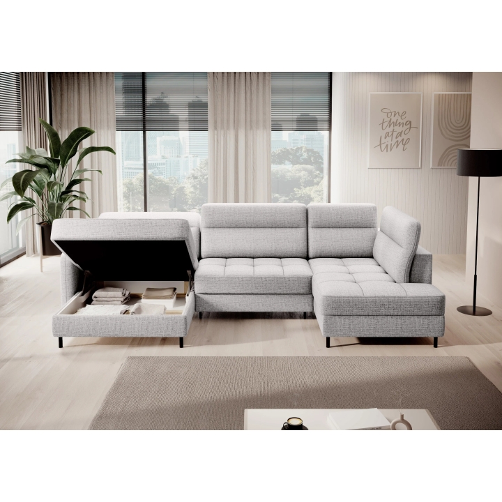 Thanks to the extensive configurator, it is possible to adjust the upholstery to individual aesthetic preferences. There is a choice of dozens of fabrics with different textures, colours and properties, which allows the corner sofa to be easily incorporated into the intended design concept. The furniture offers not only comfort of use, but also the possibility of full visual personalisation.
