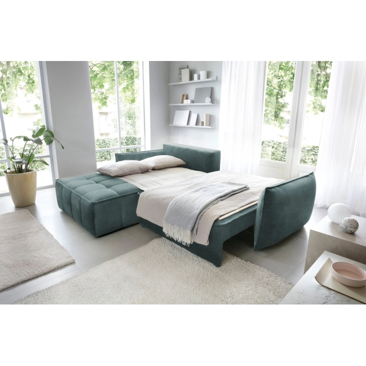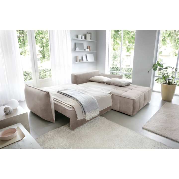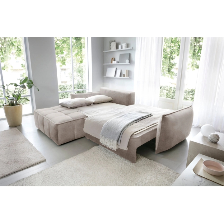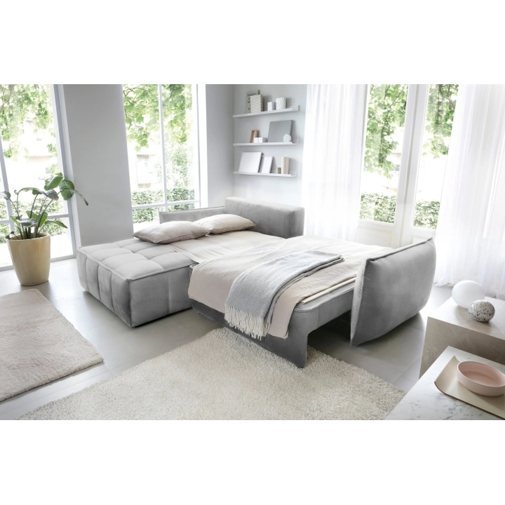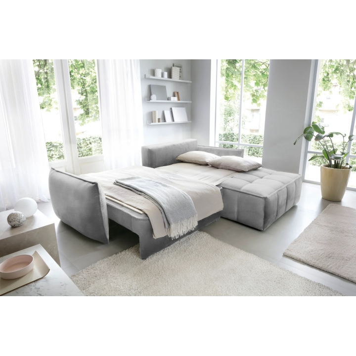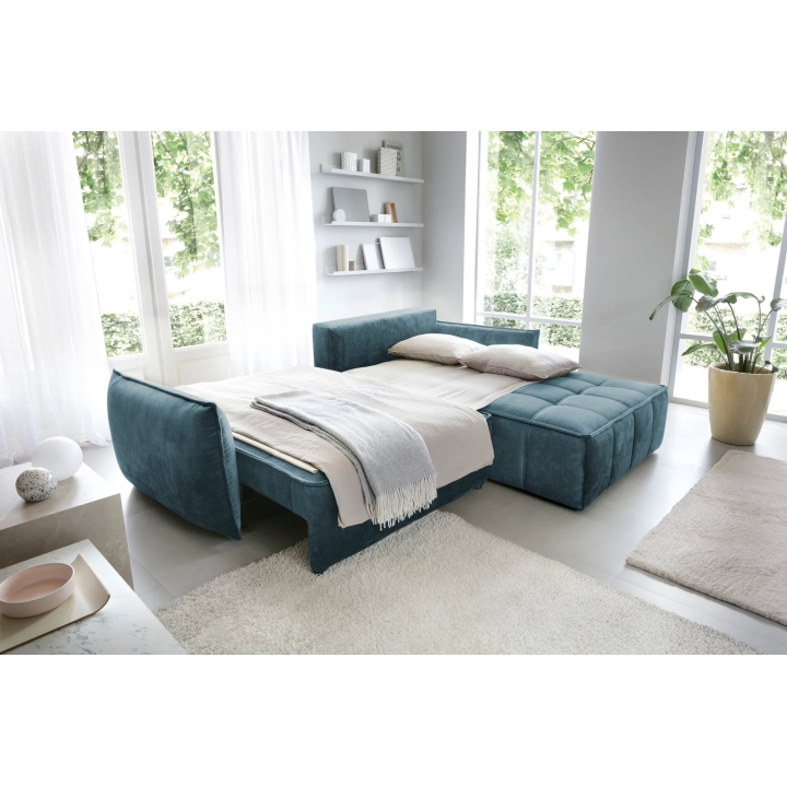The Campo model is fitted with a DL type sleeping mechanism with assistance, enabling quick and efficient unfolding of the furniture. When the seat is pulled forward, part of the backrest falls down creating a sleeping surface measuring 122x222 cm. This type of solution works well in living rooms which also function as bedrooms.