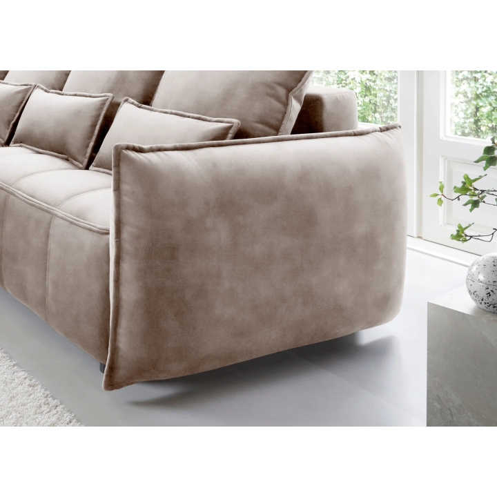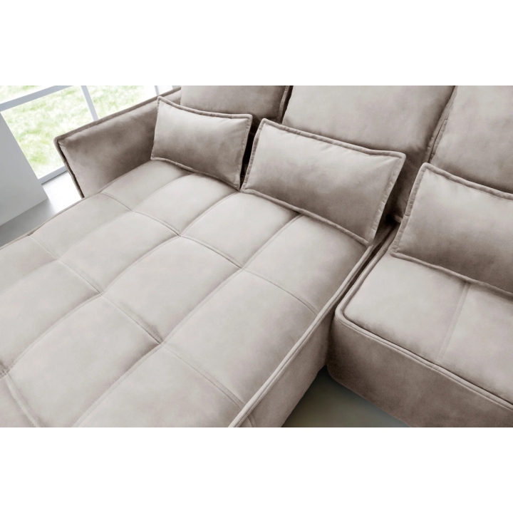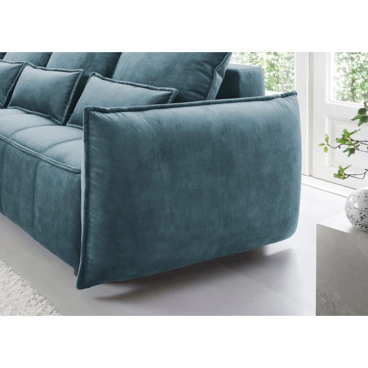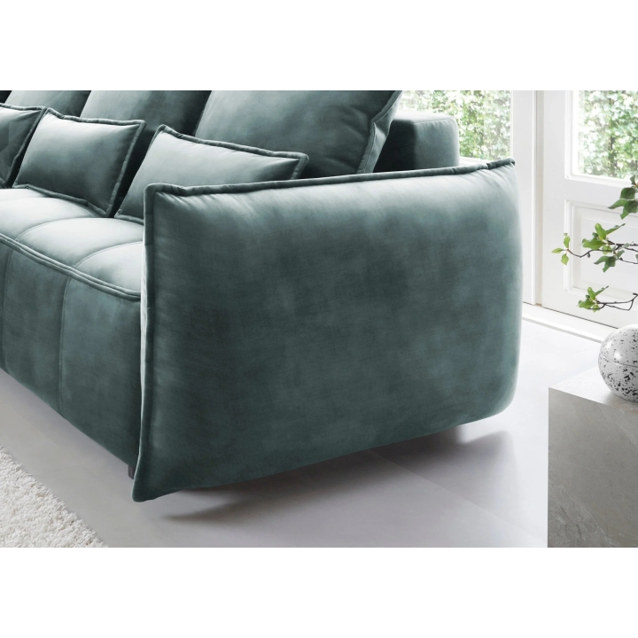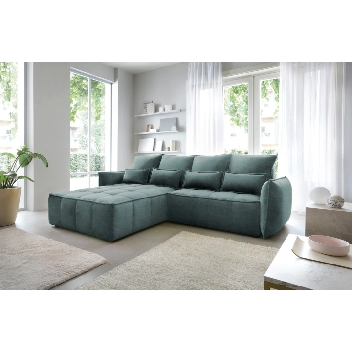 TheCampo corner sofa by Eltap is a proposal for those looking for solutions with a balanced form and soft lines. Attention is drawn to the decorative cushions and subtle piping which emphasises the furniture's contour. The model fits into modern arrangements, but thanks to its universal shape it will also work well in more classic spaces.