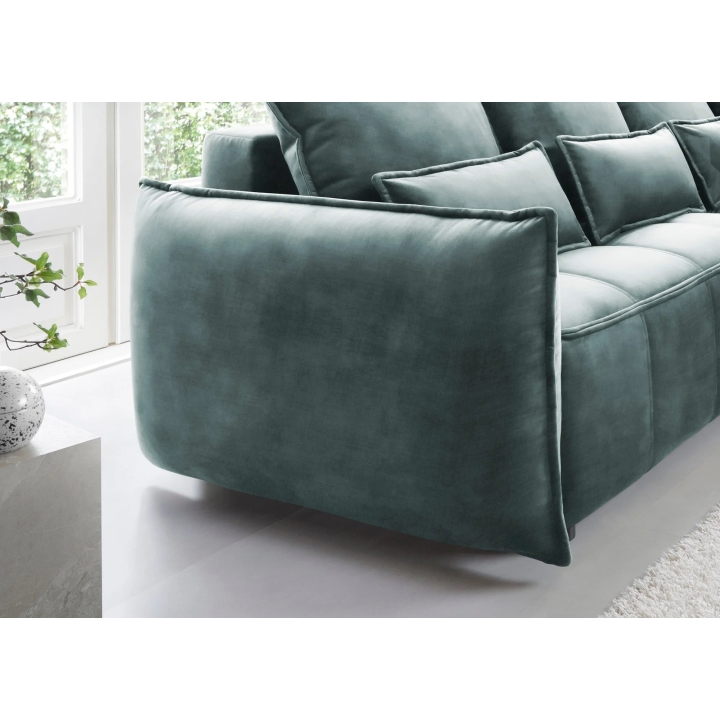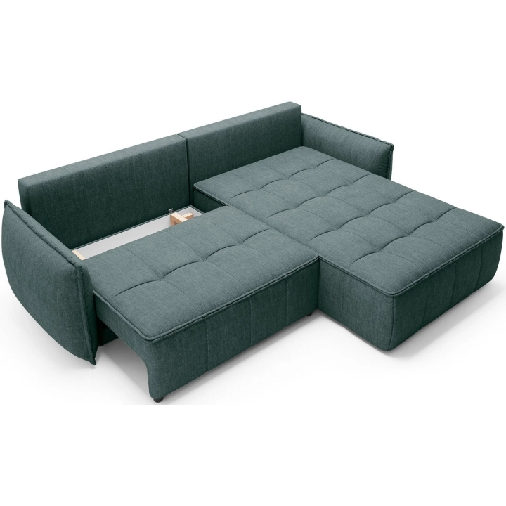 An additional advantage of the corner sofa is the storage space for bedding, located under the seat. Thoughtful management of the space makes it possible to store blankets, cushions or other textiles without having to reach for other furniture. Campo combines modern form with the convenience of everyday use, offering a full range of possibilities in a compact body.
