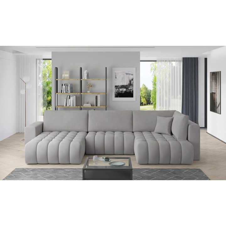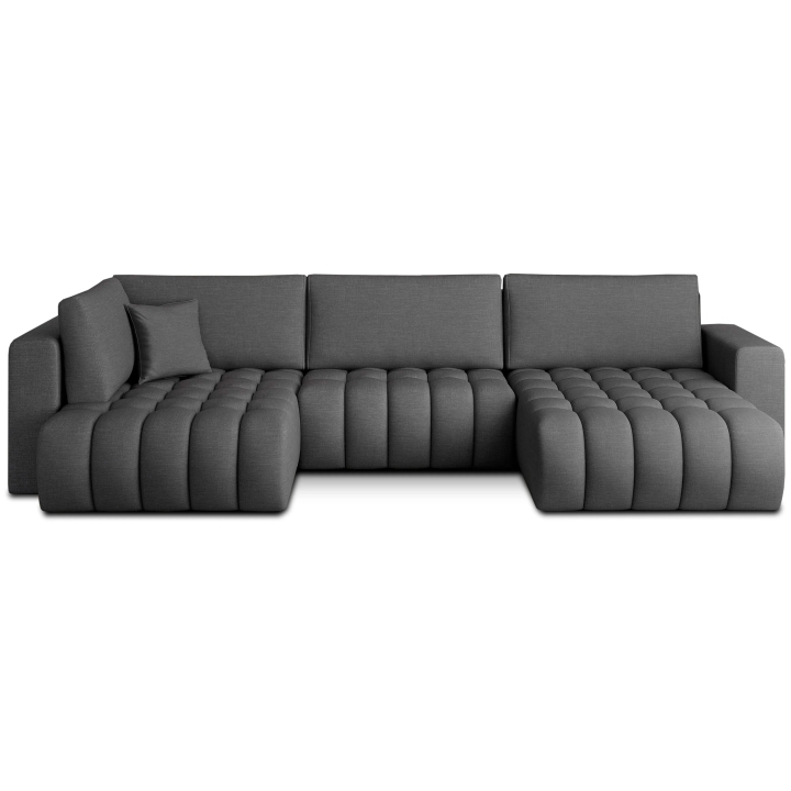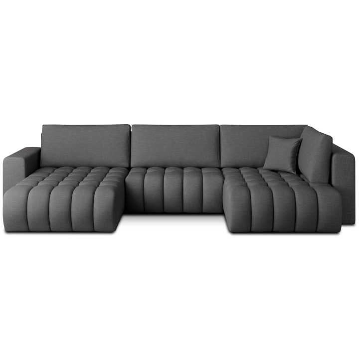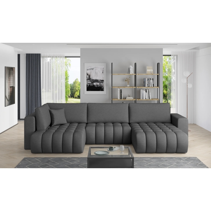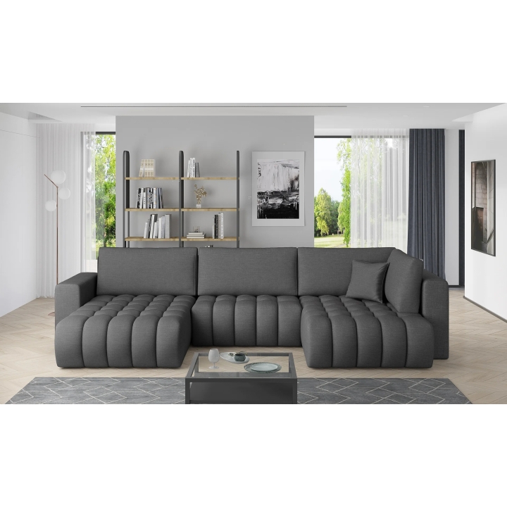 The corner sofa is equipped with a DL type unfolding mechanism - the seat slides forward and the backrest folds into the resulting space, creating a 120x300 cm sleeping surface. This makes the piece of furniture also suitable as a bed, both for family members and guests. A bedding container has been placed under the seat, which significantly increases the storage possibilities within the lounge area.
