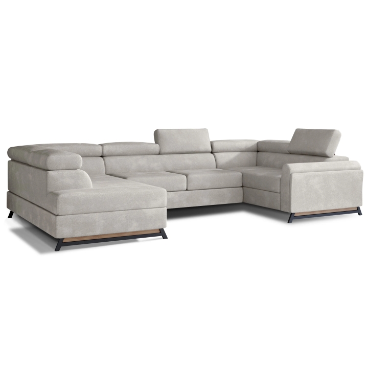 The Escada corner sofa by Eltap is anelaborate U-shaped model that offers an expansive space for relaxation and is the focal point of any living room. Its construction is based on a simple body, enriched with solutions that increase the comfort of everyday use. Noteworthy are the adjustable headrests and the high 6 cm metal legs in black, adding visual lightness to the entire form.