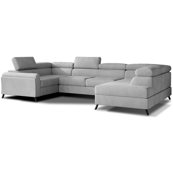 The Escada corner sofa by Eltap is anelaborate U-shaped model that offers an expansive space for relaxation and is the focal point of any living room. Its construction is based on a simple body, enriched with solutions that increase the comfort of everyday use. Noteworthy are the adjustable headrests and the high 6 cm metal legs in black, adding visual lightness to the entire form.