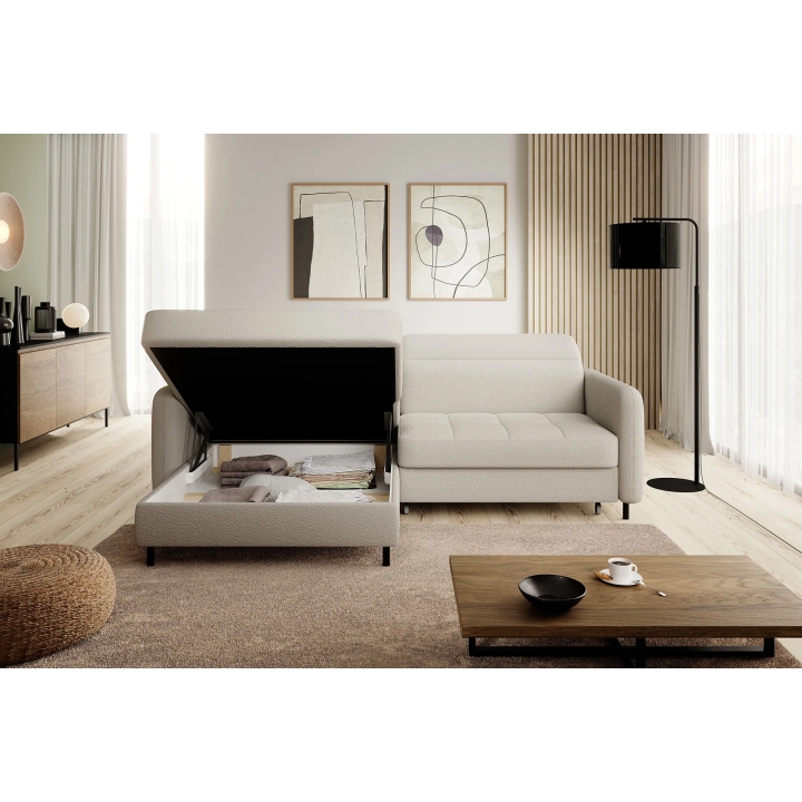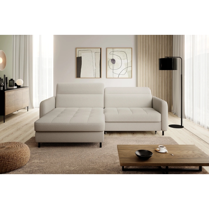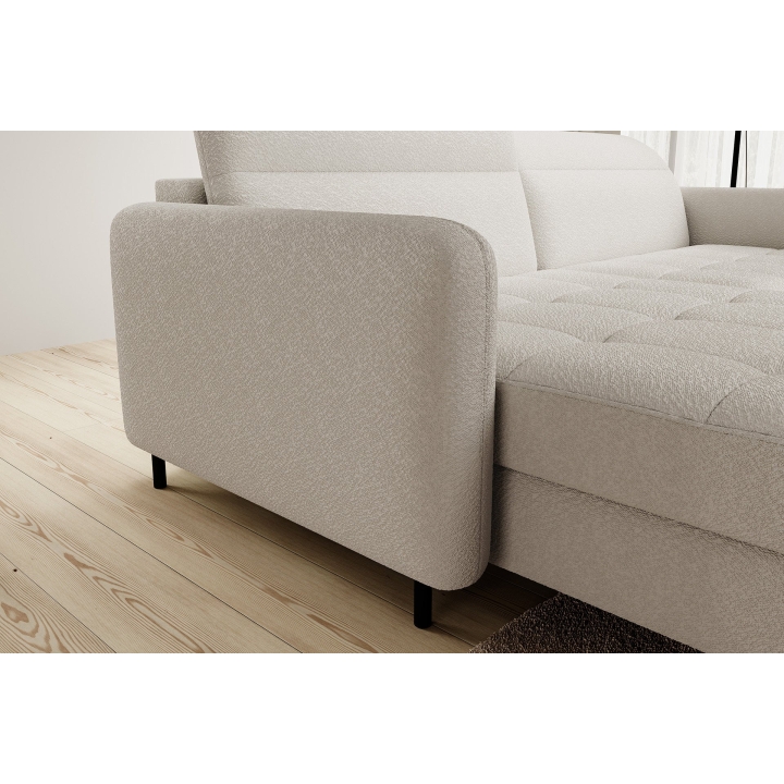 The interior of the corner sofa has been designed with great care - the seat is filled with HR foam with increased elasticity, combined with a B-type corrugated spring. The backrest is made of T25 foam supported by upholstery strips, which translates into a pleasant feeling of softness without the risk of deformation. This configuration guarantees the comfort of the seat, while remaining durable and resistant to everyday use.