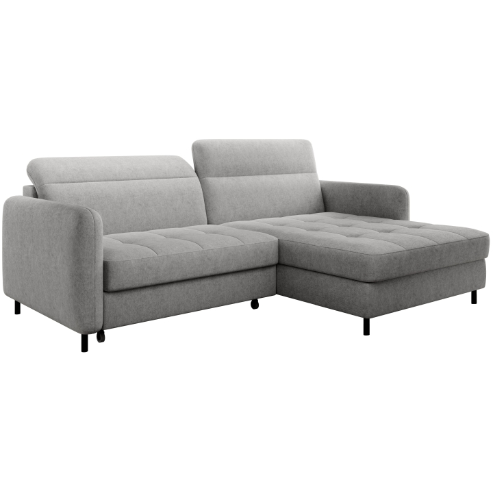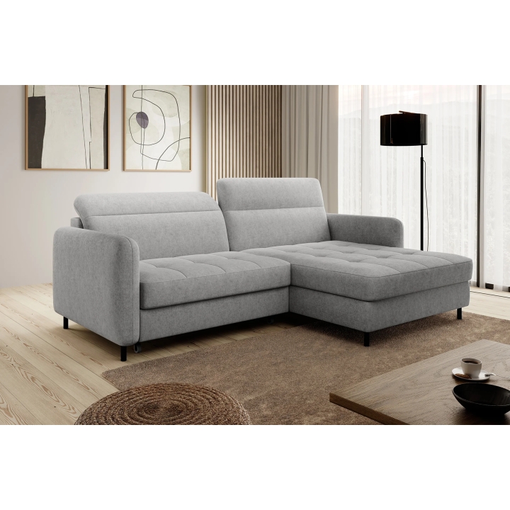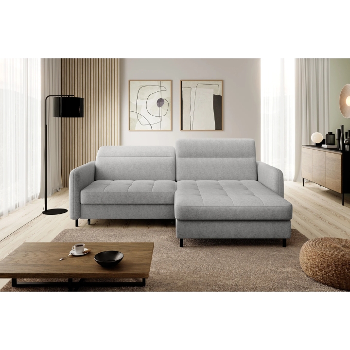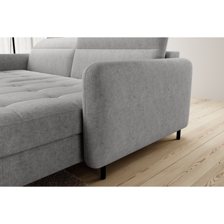 The interior of the corner sofa has been designed with great care - the seat is filled with HR foam with increased elasticity, combined with a B-type corrugated spring. The backrest is made of T25 foam supported by upholstery strips, which translates into a pleasant feeling of softness without the risk of deformation. This configuration guarantees the comfort of the seat, while remaining durable and resistant to everyday use.