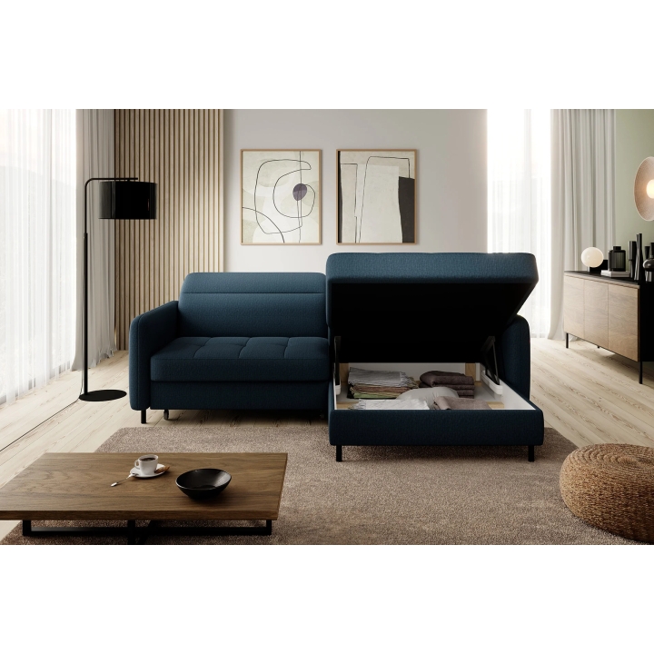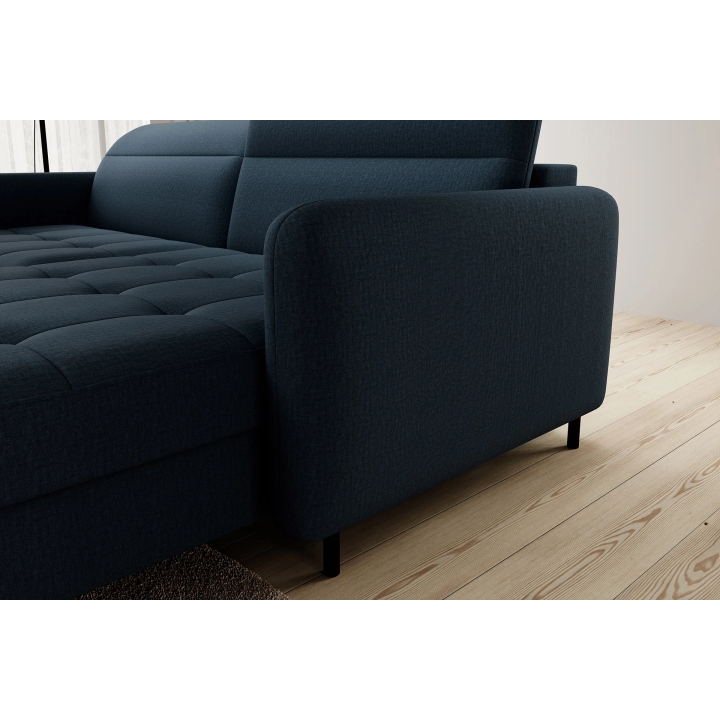 The interior of the corner sofa has been designed with great care - the seat is filled with HR foam with increased elasticity, combined with a B-type corrugated spring. The backrest is made of T25 foam supported by upholstery strips, which translates into a pleasant feeling of softness without the risk of deformation. This configuration guarantees the comfort of the seat, while remaining durable and resistant to everyday use.