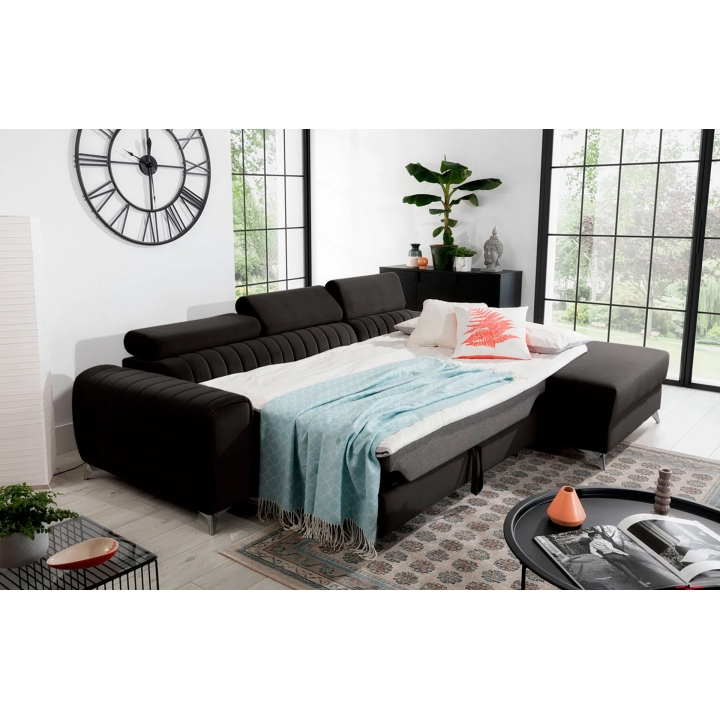 Thanks to the extensive configurator, it is possible to tailor the upholstery to individual aesthetic preferences. There is a choice of dozens of fabrics with different textures, colours and properties, which makes it easy to incorporate the corner sofa into the intended design concept. The furniture offers not only comfort of use, but also the possibility of full visual personalisation.