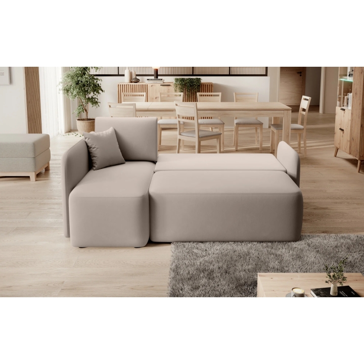 This model is equipped with a DL-type unfolding mechanism, which allows you to easily obtain a sleeping space of 115x184 cm. This system works by pulling the seat forward and folding the backrest flat, creating an even and comfortable surface. This solution makes the Hadson corner sofa successfully function as a bed.