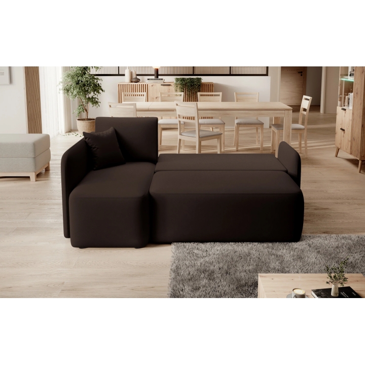 This model is equipped with a DL-type unfolding mechanism, which allows you to easily obtain a sleeping space of 115x184 cm. This system works by pulling the seat forward and folding the backrest flat, creating an even and comfortable surface. This solution makes the Hadson corner sofa successfully function as a bed.