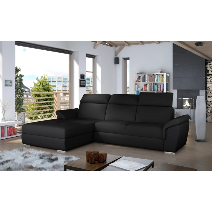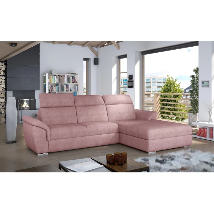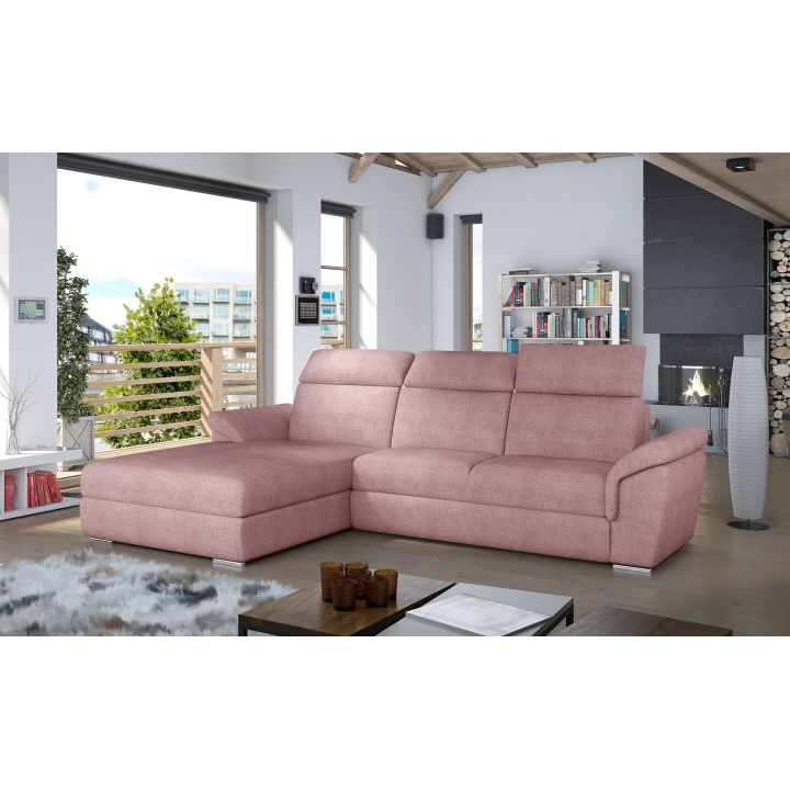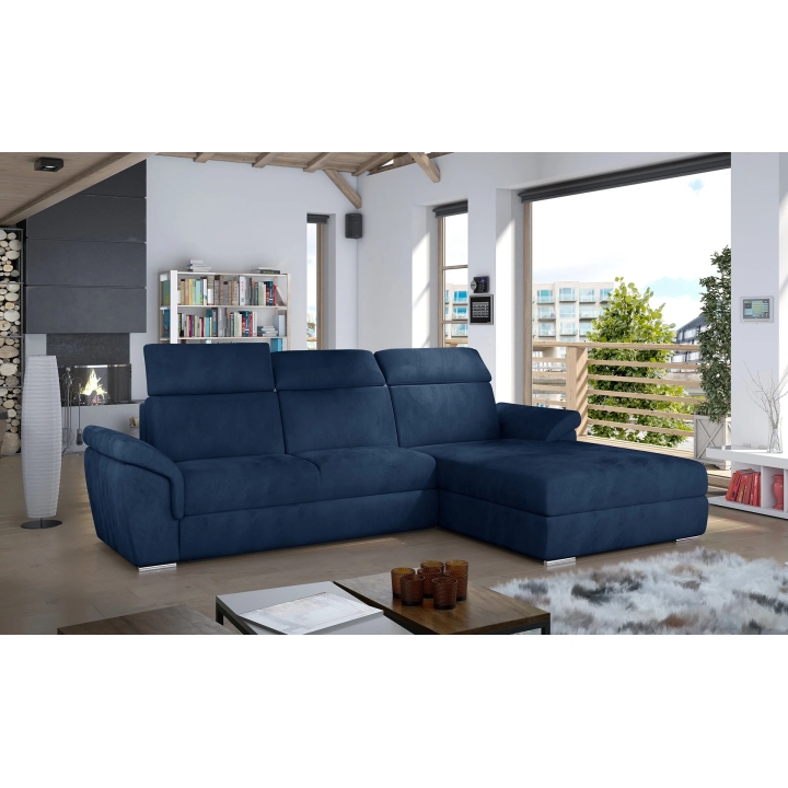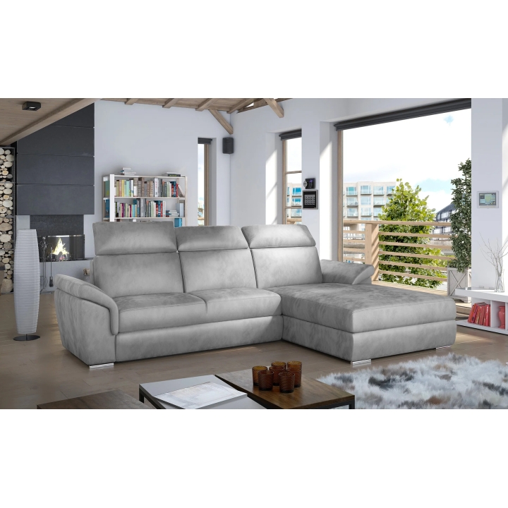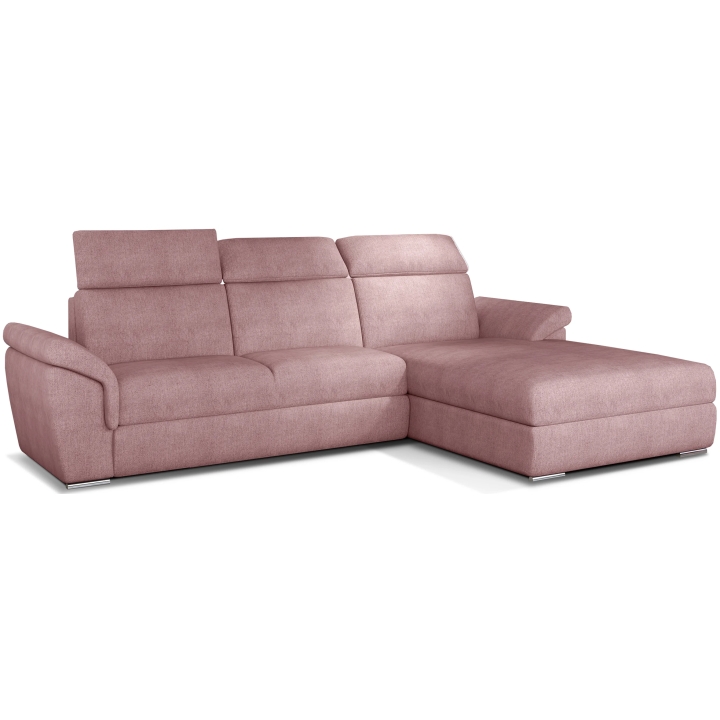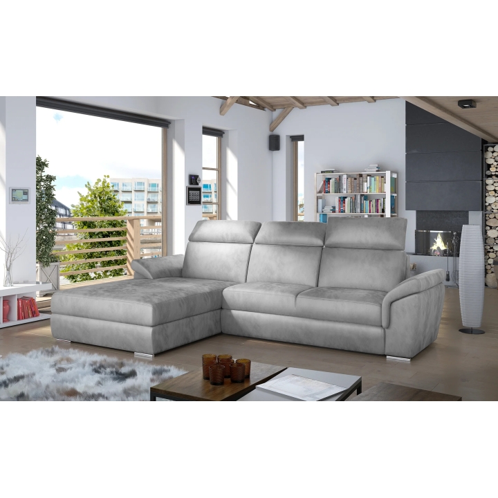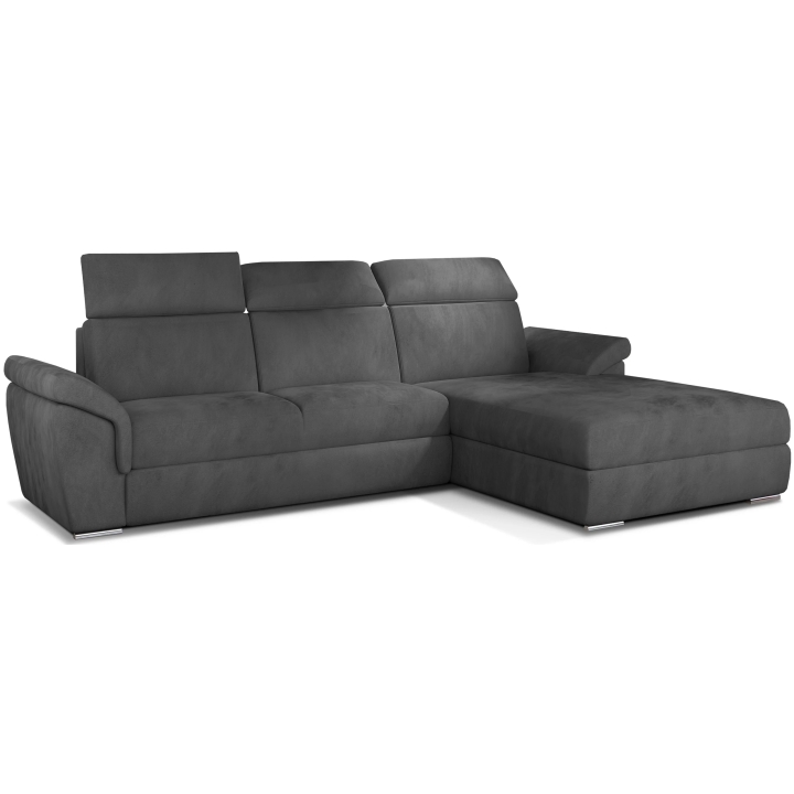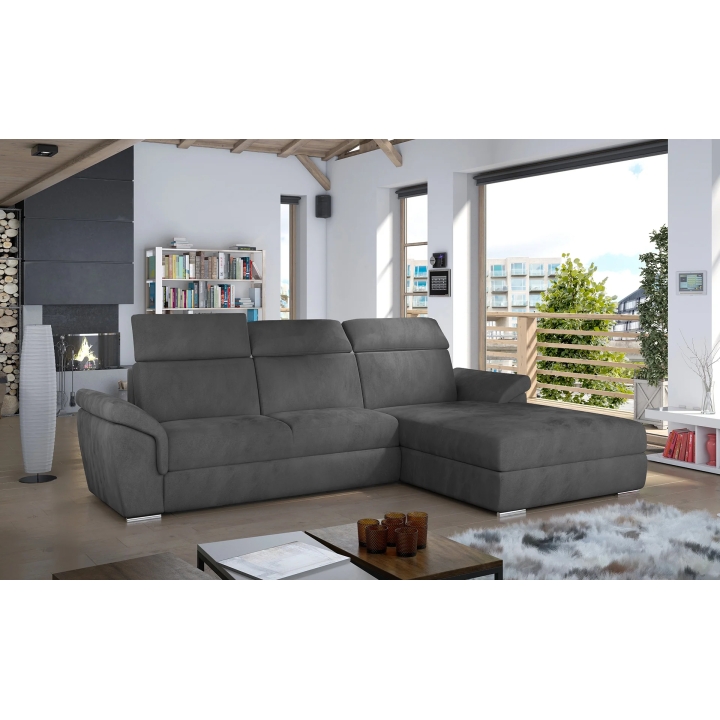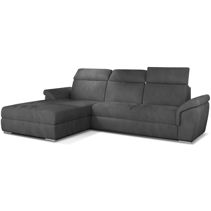 The backrest equipped with adjustable headrests allows you to adjust the angle of head and neck support, which translates into more pleasant use. Armrests inclined at a slight angle and thoughtful stitching lines accentuate the attention to detail. High-quality upholstery completes the whole, giving the corner sofa a distinctive form.