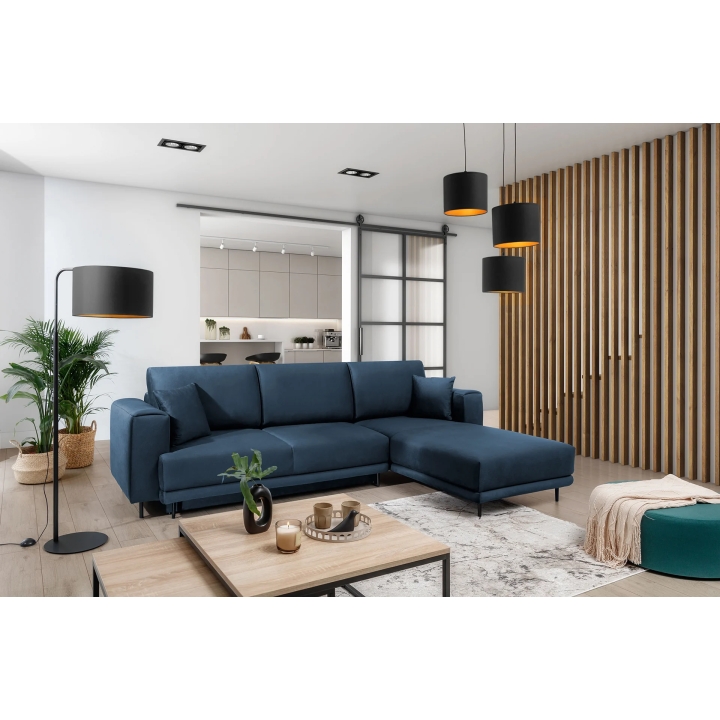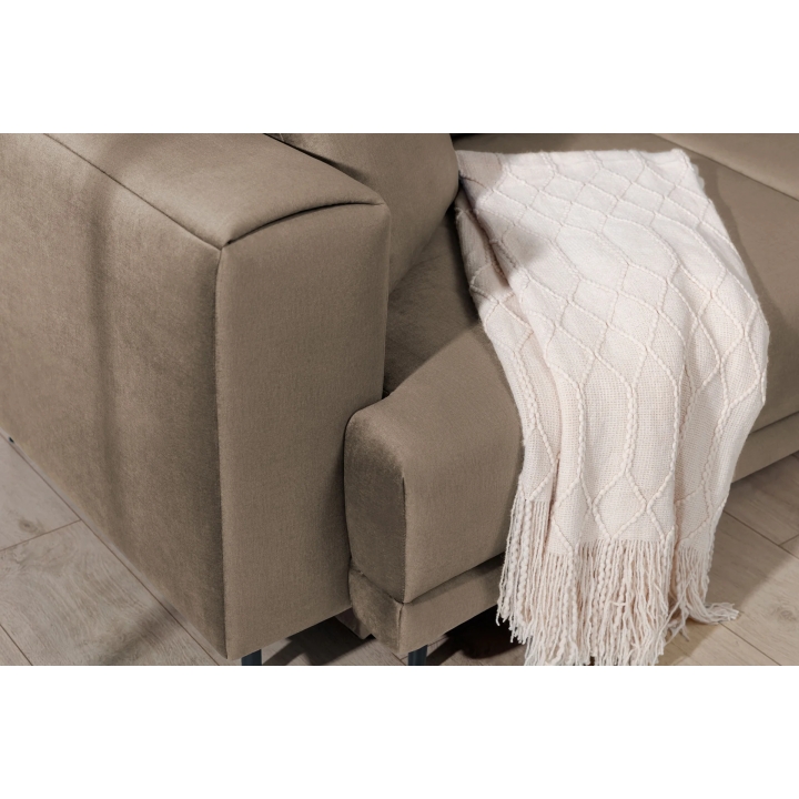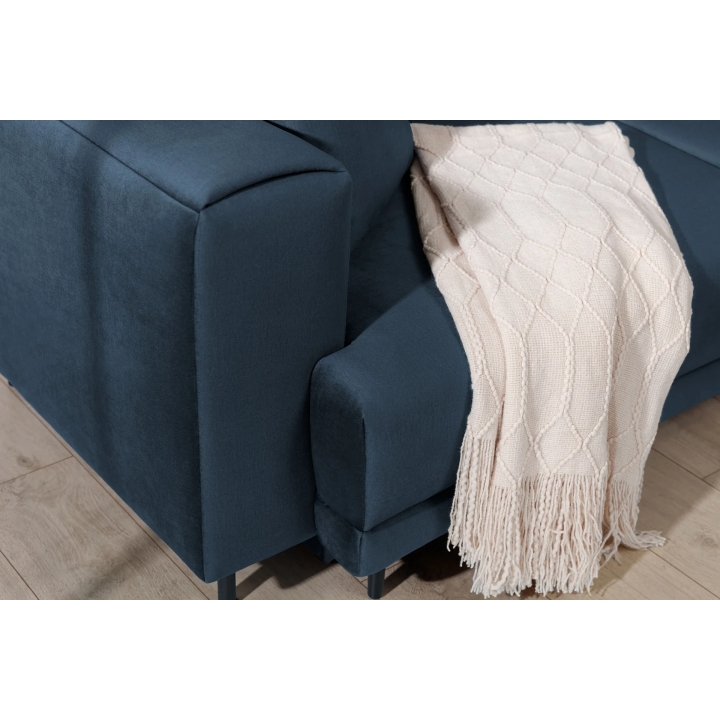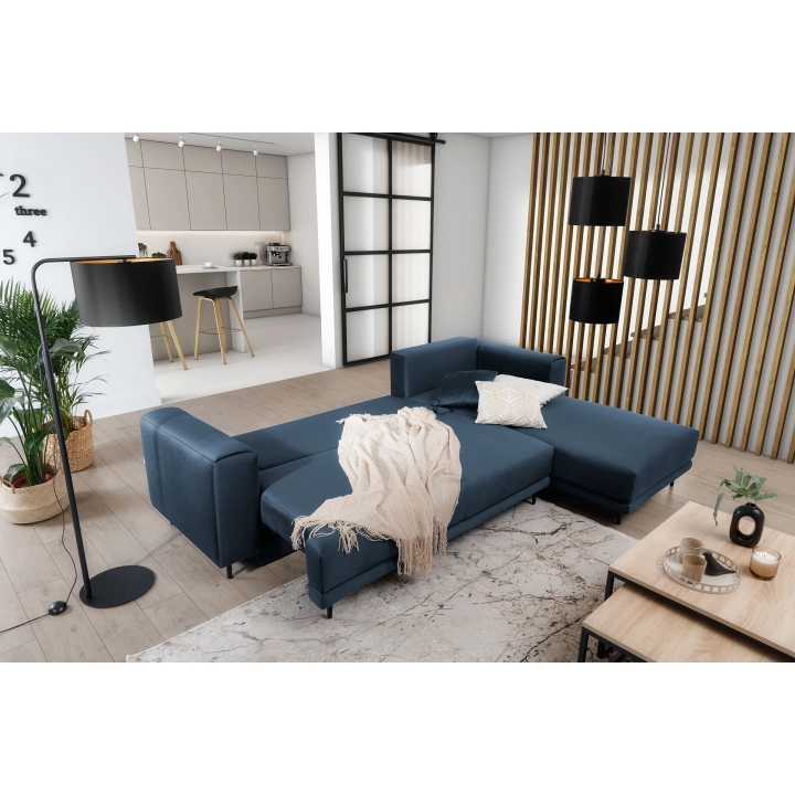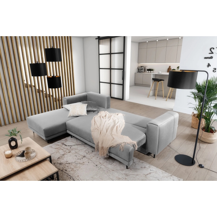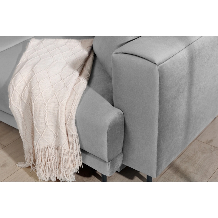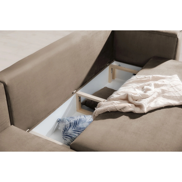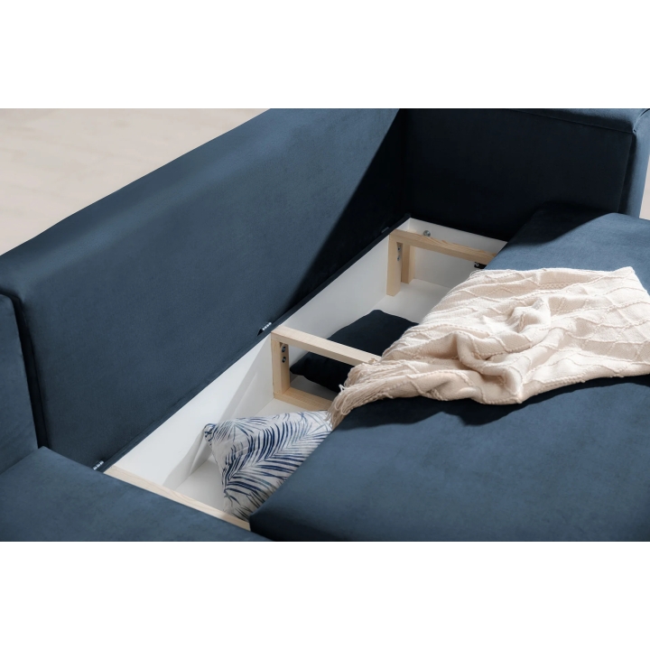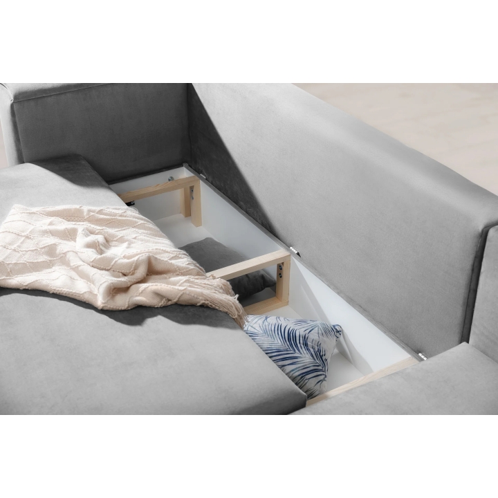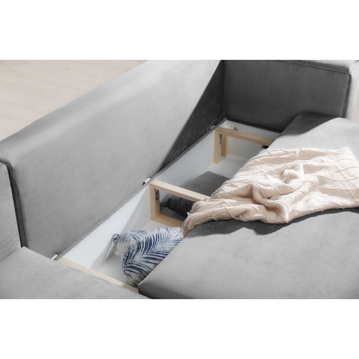 An additional feature of the corner sofa is the bedding container hidden inside the furniture. This ample storage holds duvets, pillows or other textiles without taking up extra space in the room. This makes it easier to keep the living room tidy, regardless of its size.