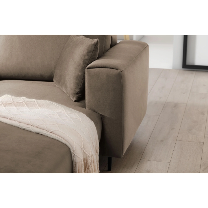 The Dalia corner sofa by Eltap is a proposal for those looking for a distinctive accent to the living room. Its L-shaped design allows you to arrange the seating area so that it becomes a natural centre for everyday relaxation. The black steel legs, 12 cm high, add visual lightness to the piece of furniture and give it a distinct, modern form.