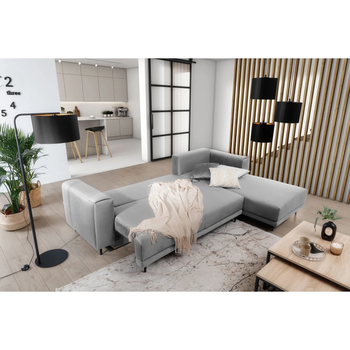 The Dalia model is equipped with a DL sleeping mechanism, which allows you to quickly turn the corner into a comfortable place for a night's rest. Simply slide the seat forward and fold the backrest to obtain a sleeping surface measuring 127x247 cm. This is a great solution for guests staying overnight or as a daily snooze spot.