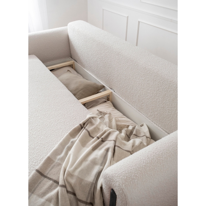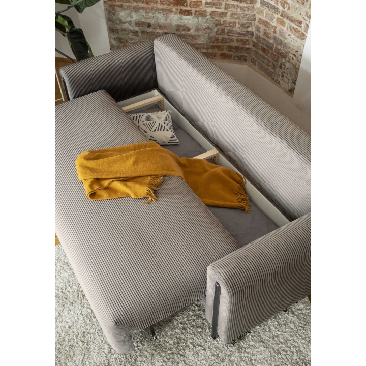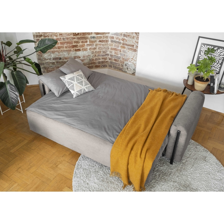 Arcadova I also offers a DL sleeping function, which allows you to unfold a sleeping surface of 146x200 cm. The mechanism involves pulling the seat forward and folding the backrest into the resulting space, creating a single, comfortable surface. When the seat is unfolded, you also gain access to the bedding container, ideal for storing blankets, sheets or cushions.