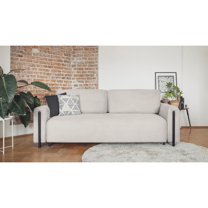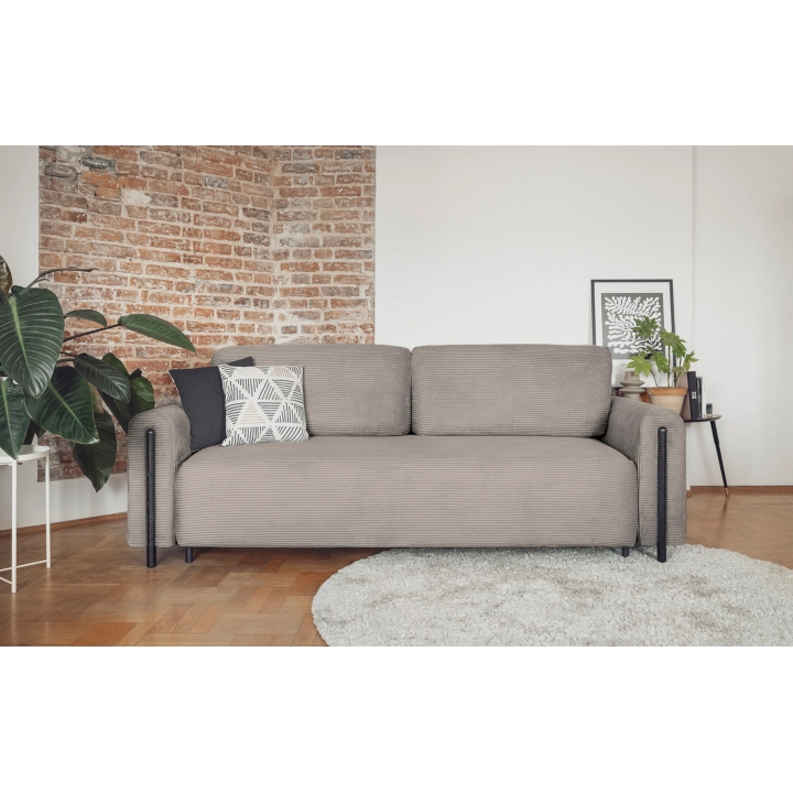 The seat measures200 cm wide and 84 cm deep and is made of HR foam and B-type corrugated spring, which translates into a perceptible springiness and support. The seat height is 51 cm and the backrest is based on T25 high-flexible foam. The materials used in the production promote comfort for both everyday lounging and the occasional overnight stay.