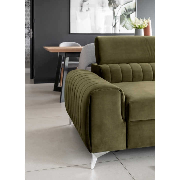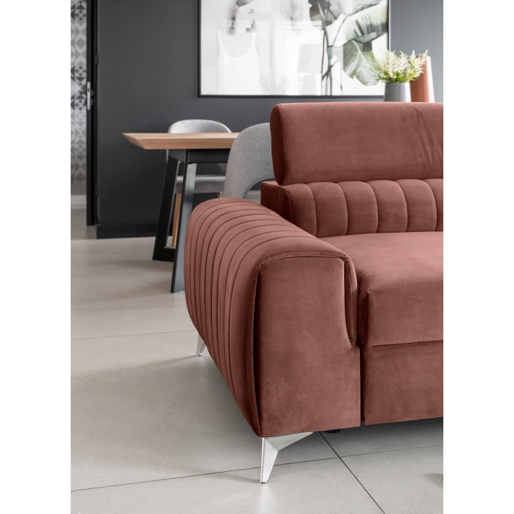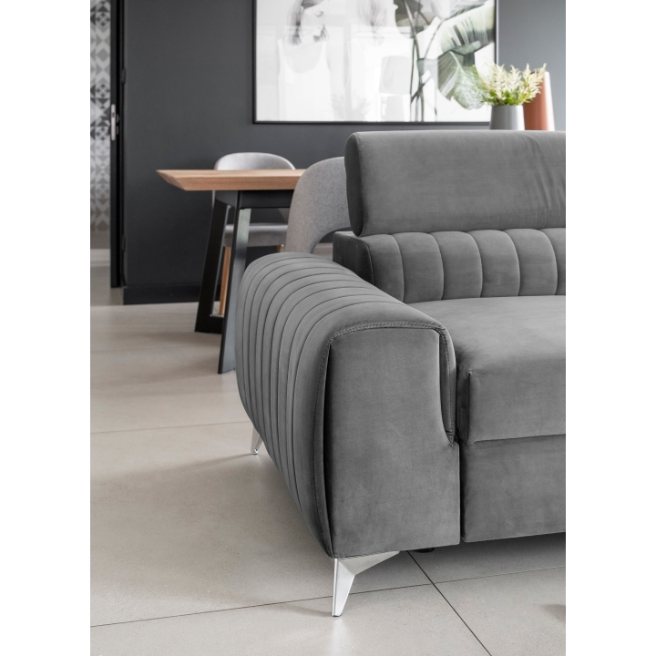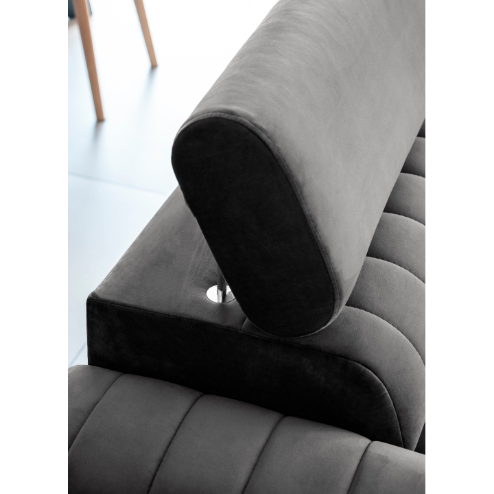 Thanks to the extensive configurator, it is possible to tailor the upholstery to individual aesthetic preferences. There is a choice of dozens of fabrics with different textures, colours and properties, which allows the corner sofa to easily fit into the intended design concept. The furniture offers not only comfort of use, but also the possibility of full visual personalisation.