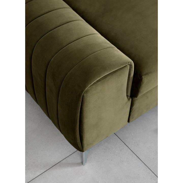 The body of the furniture is set on 9 cm high silver-coloured steel legs, which contributes to the light, raised form of the sofa and makes it easier to keep the furniture clean underneath. The simple, modern shape contrasts with subtle details, emphasising the care and thoughtful design. The overall look is light but solid - also thanks to the wide armrest with a width of 31 cm and a height of 56 cm.