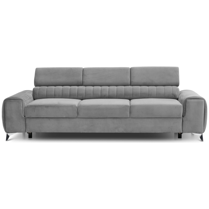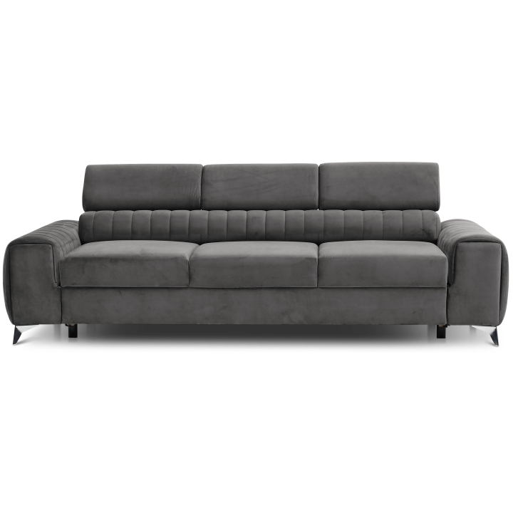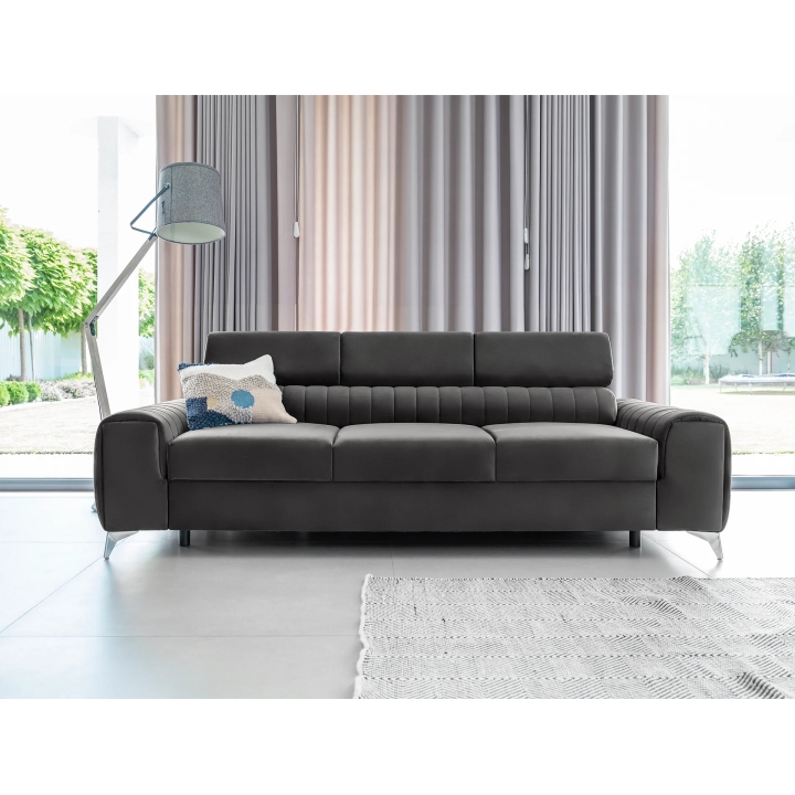 The seat, 45 cm high and 67 cm deep, is made with B-type corrugated springs, which provide stable support and flexibility during use. The overall dimensions of the piece of furniture are 261 cm wide, 97 cm deep and 75 cm high, with the height increasing to 105 cm when the headrests are unfolded. Every detail promotes relaxation and comfort both when sitting and lying down.