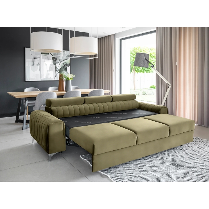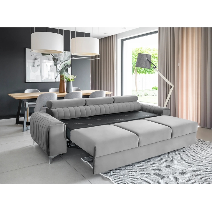 The Laurence model also offers a sleeping function - it uses the Puma Plus mechanism, which works by lifting the seat and automatically extending the second section from within it. This system is gentle on floors, thanks to the retracted legs that do not come into contact with the surface when unfolding. The resulting sleeping surface of 199x136 cm is enough to comfortably accommodate two people. It is an option for those looking for a sophisticated combination of daytime comfort and occasional sleeping.