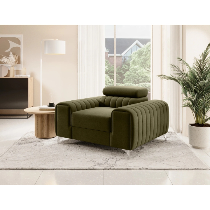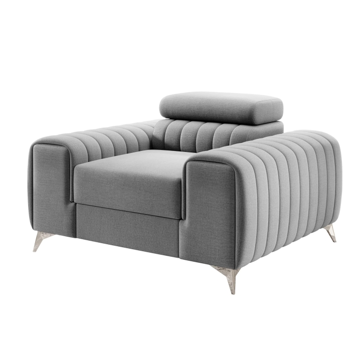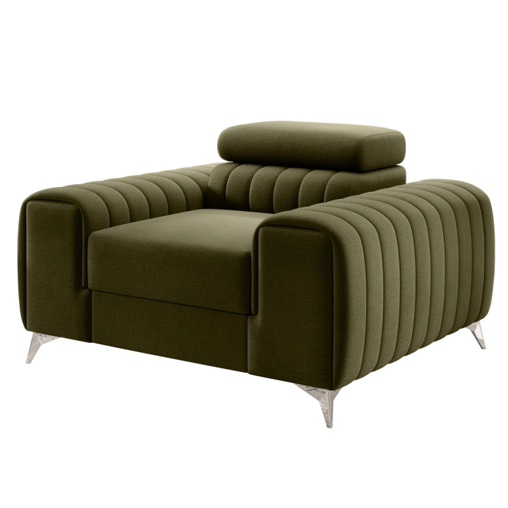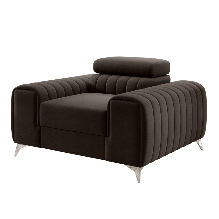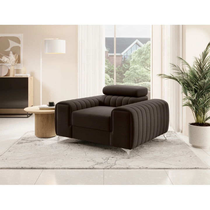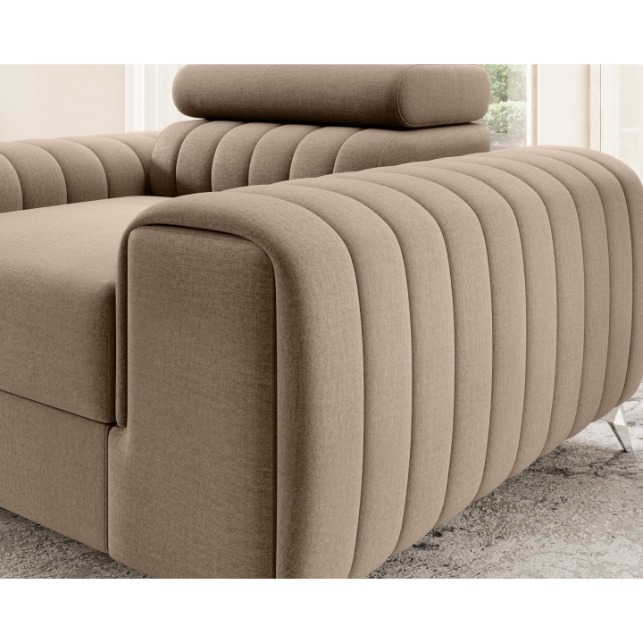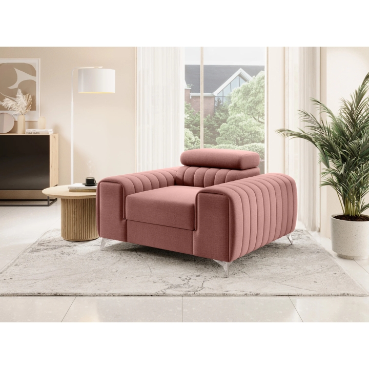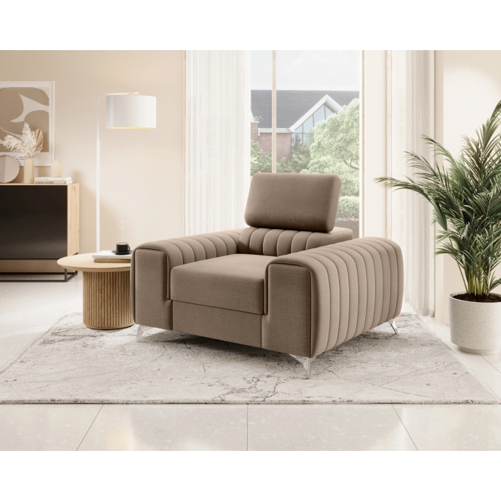 The Laurence lounge armchair by Eltap is a proposal for those who appreciate traditional forms in a modern setting. Attention is drawn to the vertical stitching on the backrest, which gives the whole armchair a distinctive character. The adjustable headrest not only increases the comfort of rest, but also introduces an element of individual adjustment.