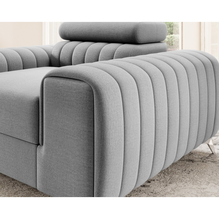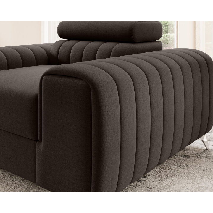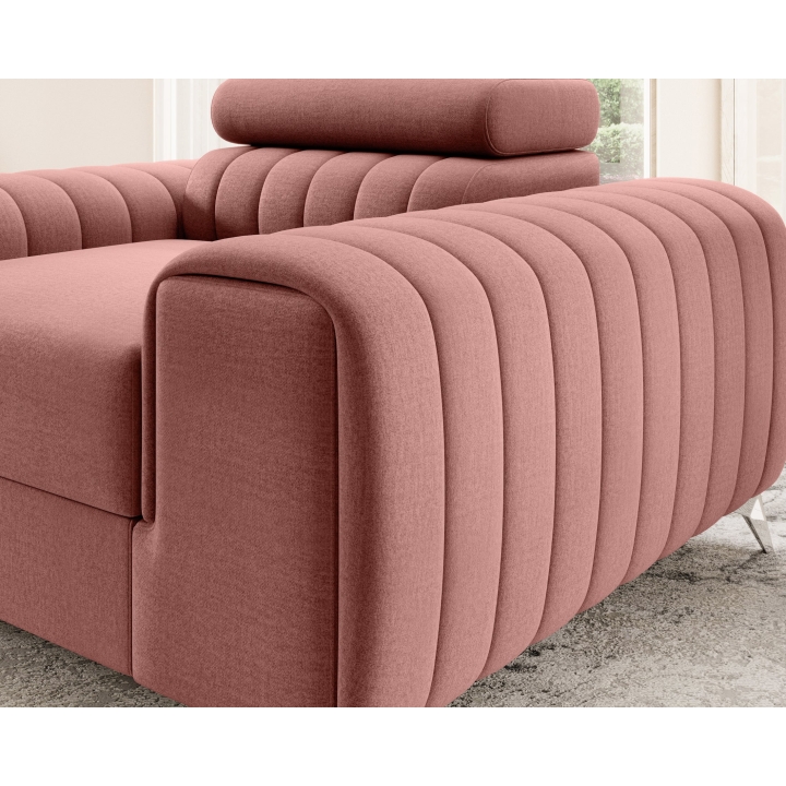 An additional advantage of the Laurence model is the possibility of adjusting the headrest, which makes it possible to support the head and neck better - especially during film screenings or reading. Such a solution promotes relaxation in a personalised form, tailored to current needs. Each element of the armchair has been designed with the user's comfort and precision of finish in mind.