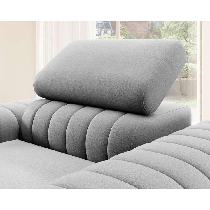 Laurence is 125 cm wide and 97 cm deep, and its height can be adjusted from 75 cm to 105 cm thanks to the movable headrest. The seat, 55 cm deep and 35 cm high, provides a space suitable for both short rests and longer relaxation. The careful design allows you to adopt a comfortable position whatever the time of day.
