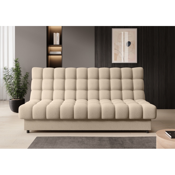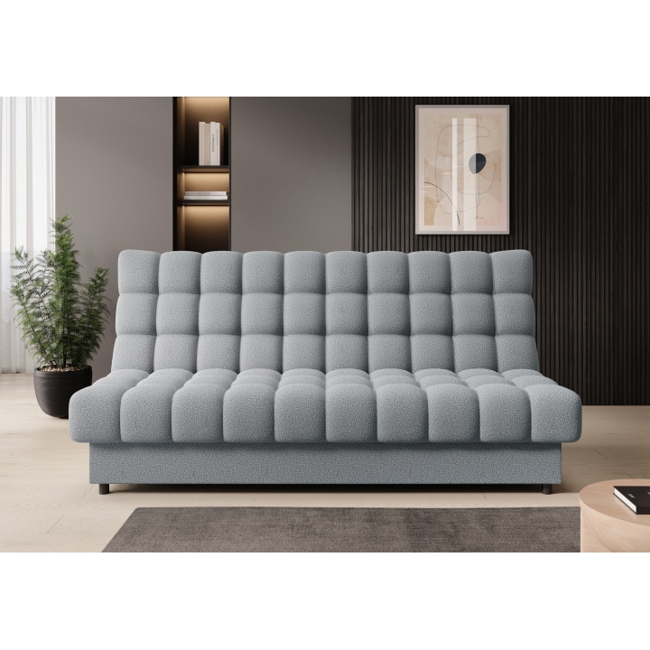 Thanks to the click-clack mechanism, the Clareta sofa can be easily transformed into a place to sleep. Simply lift the backrest slightly and then lower it backwards - the mechanism automatically locks it horizontally, creating a uniform sleeping surface together with the seat. When unfolded, the result is a space measuring 123x197 cm, which provides just the right length and width for a comfortable rest.