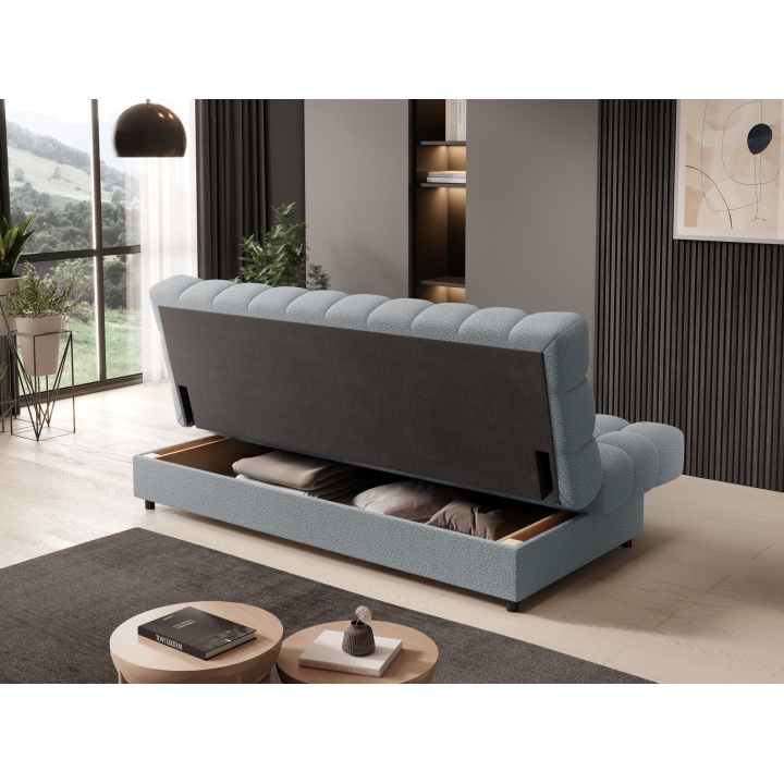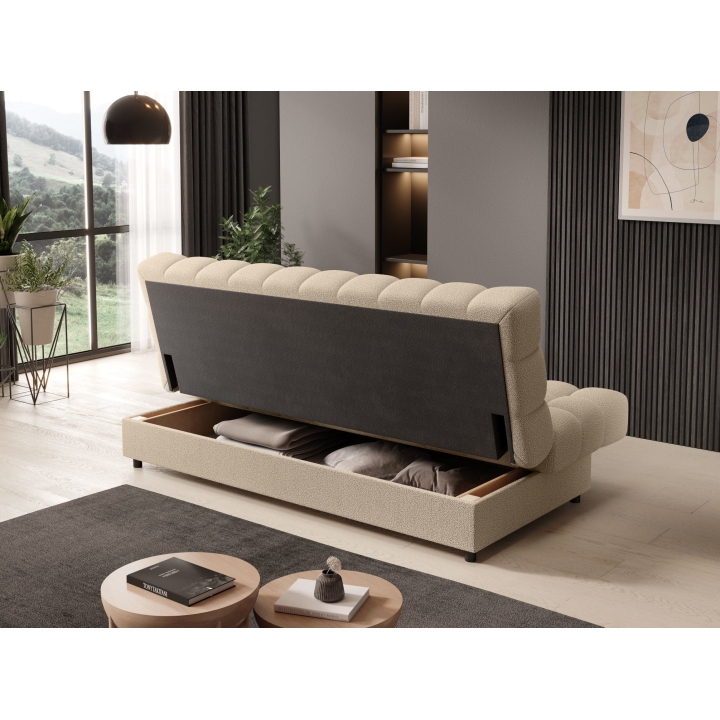 An additional advantage of the Clareta model is the presence of a bedding container for easy storage of home textiles. This space has been discreetly integrated into the lower part of the furniture, offering additional space without disturbing the proportions. The Clareta sofa thus combines everyday comfort with a well thought-out design, meeting the needs of contemporary users.