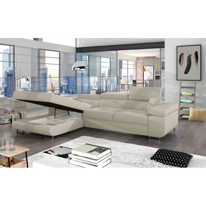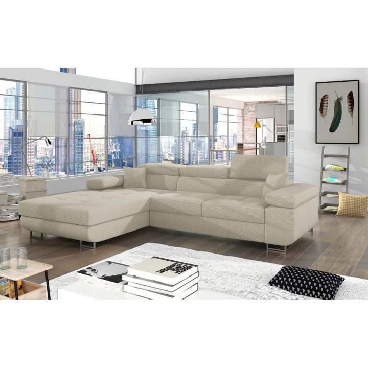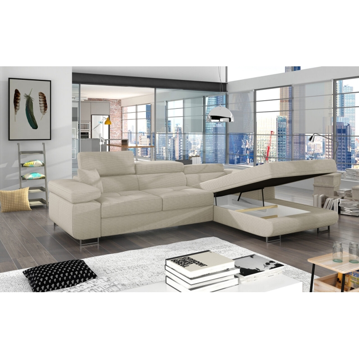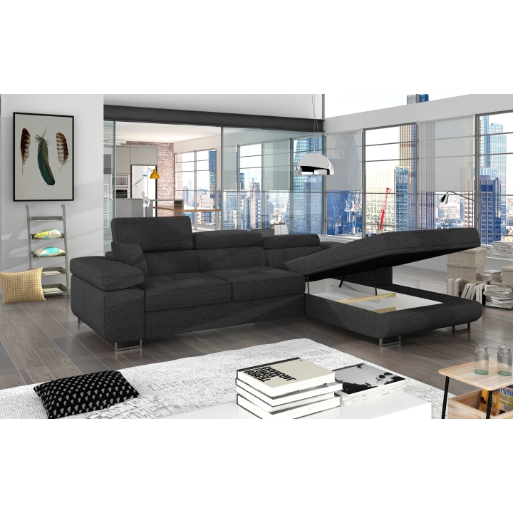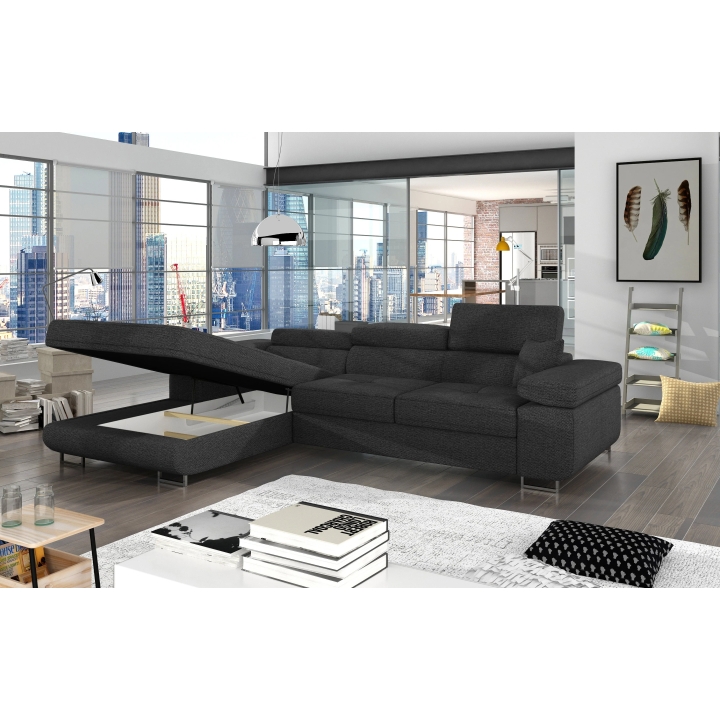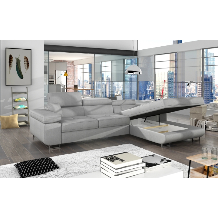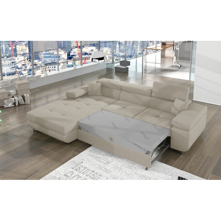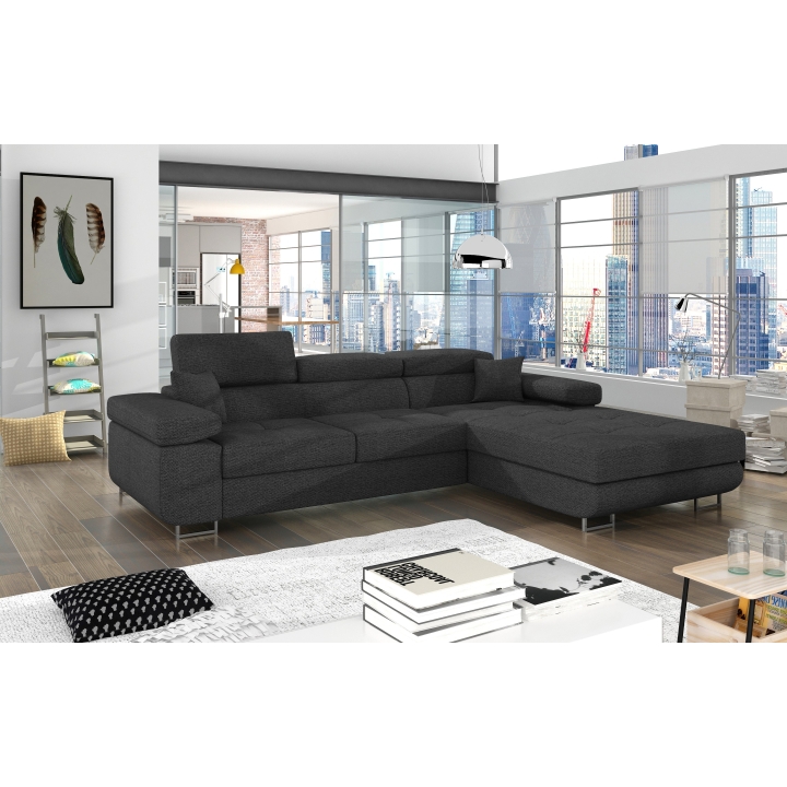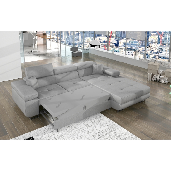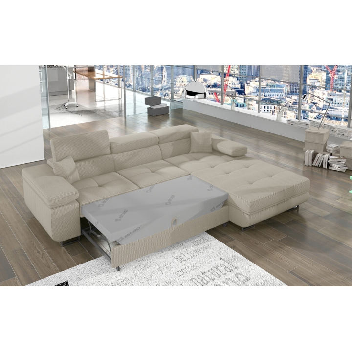 Thanks to the extensive configurator, it is possible to customise the upholstery to suit individual aesthetic preferences. There is a choice of dozens of fabrics with different textures, colours and properties, which makes it easy to incorporate the corner sofa into the intended design concept. The furniture offers not only comfort of use, but also the possibility of full visual personalisation.