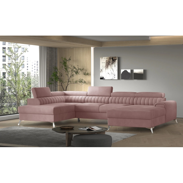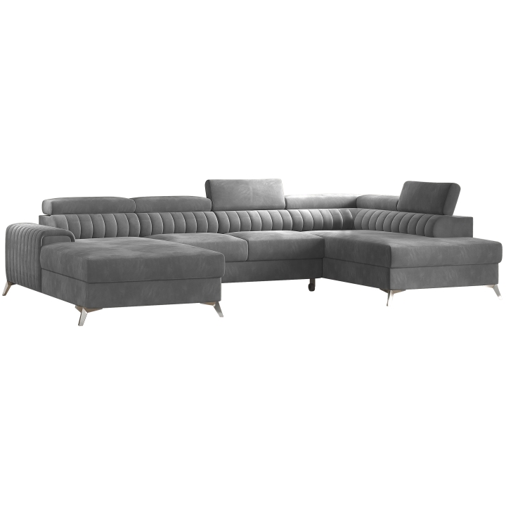 The Lacante corner sofa is equipped with movable headrests measuring 72x30 cm, which can be adjusted according to the user's needs. An additional advantage is the presence of a dolphin-type sleeping mechanism - simply slide out the lower part and lift the mattress to obtain a 265x123 cm sleeping surface. Operating this system is effortless and unfolding is quick and efficient.