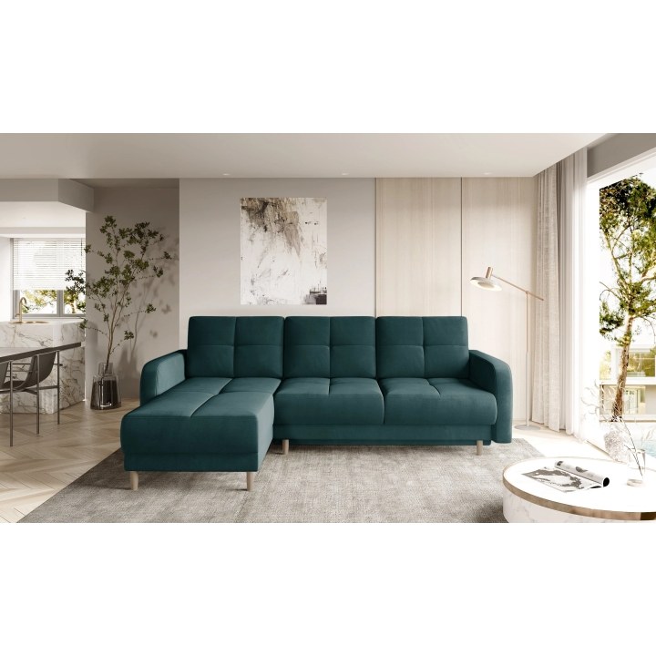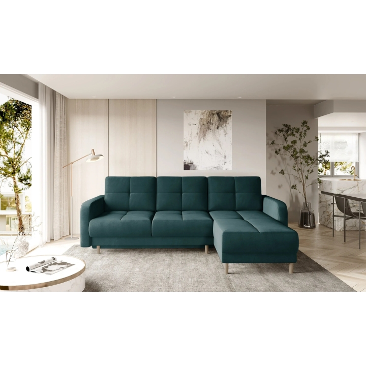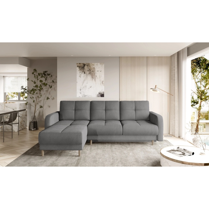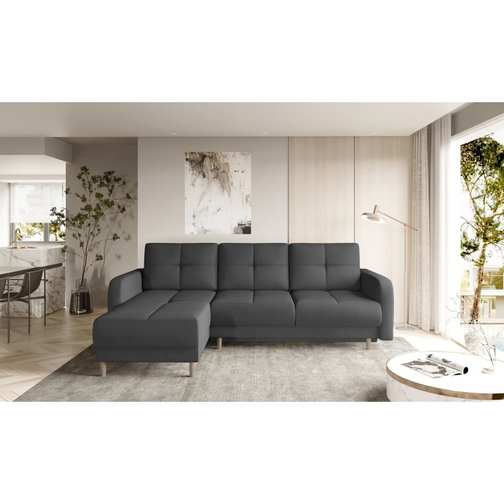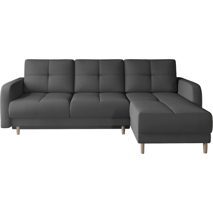 Roxi is equipped with the DL mechanism, which allows the furniture to be unfolded for sleeping - when the seat is extended and the backrest folded, an area of 120x215 cm is created. In addition, the corner sofa offers a bedding container for easy storage of additional textiles. Such a solution promotes tidiness and saves space in wardrobes.