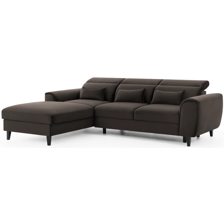 The ottoman is 100 cm wide and works well as a place to rest during the day. The corner sofa has three larger cushions with adjustable headrests that allow you to lean back comfortably. It also comes with three smaller decorative cushions that increase comfort and also look good on other furniture, such as armchairs.