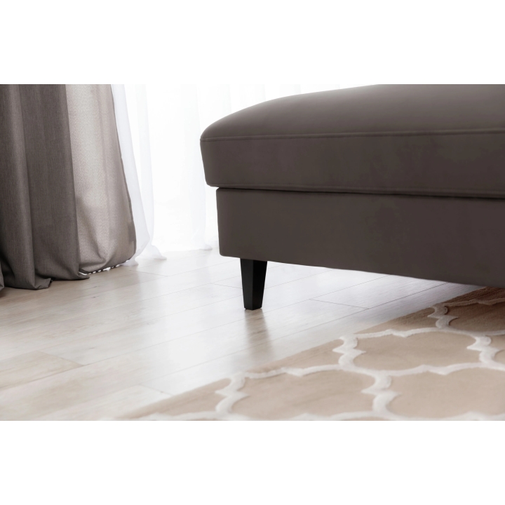 The Foble corner sofa by Eltap is a proposal that stands out for its refined form and subtle finish. Its streamlined silhouette, softly defined lines and rounded edges create a piece of furniture that brings lightness and visual harmony to the interior. It is set on slender 13 cm deep black wooden legs, which emphasises the sophisticated character of the piece.