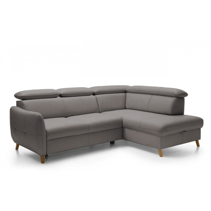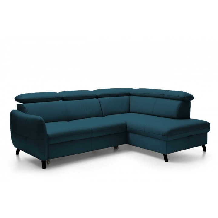 A sofa bed with a sleeping function from the Hugo collection manufactured by Etap-Sofa is a combination of chic and style in a beautiful form. Its chic design will delight even the most demanding customer. The sofa with a sleeping function from the Hugo collection will fit perfectly into rooms such as a living room or guest room. It also has adjustable headrests thanks to which you can comfortably rest not only your back but also your head while resting, The high legs add lightness to the corner sofa.